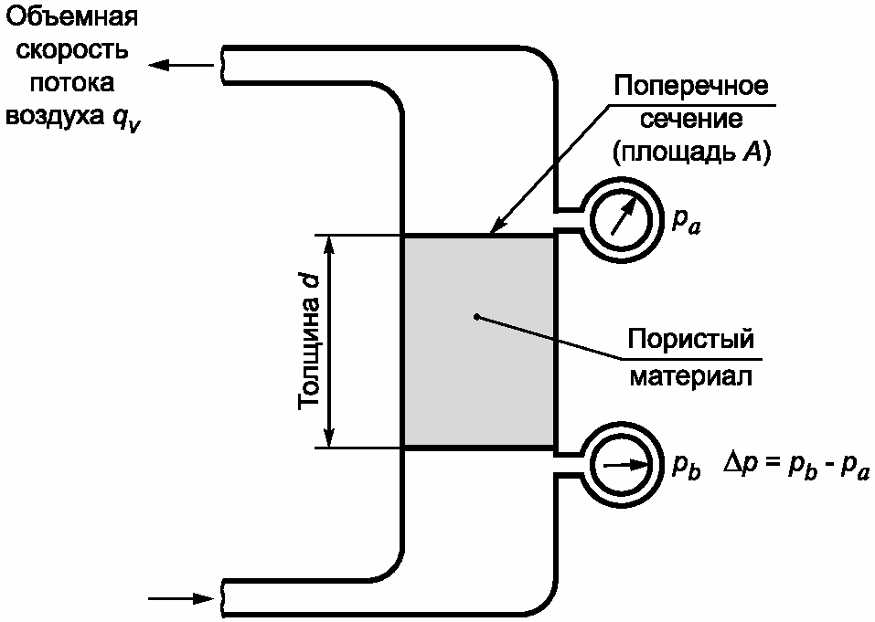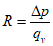 3: Отношение разности давлений воздуха с двух сторон образца пористого материала к объемной скорости потока воздуха через образец, определяемое по формуле
