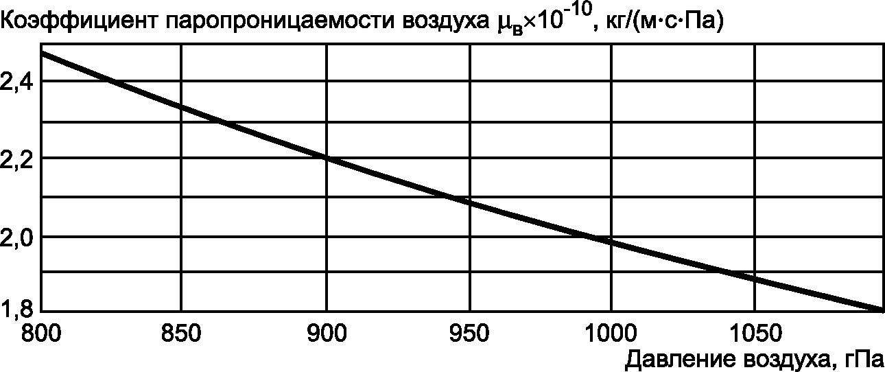 или определяют графически по графику зависимости коэффициента паропроницаемости воздуха от давления при температуре 23 °C (см. рисунок А.1).