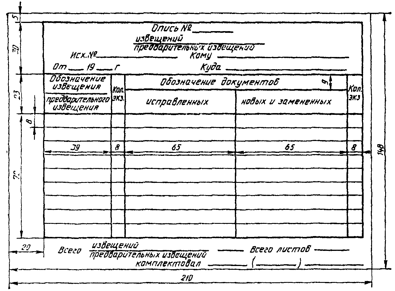 8. Опись извещений и предварительных извещений (далее - опись)