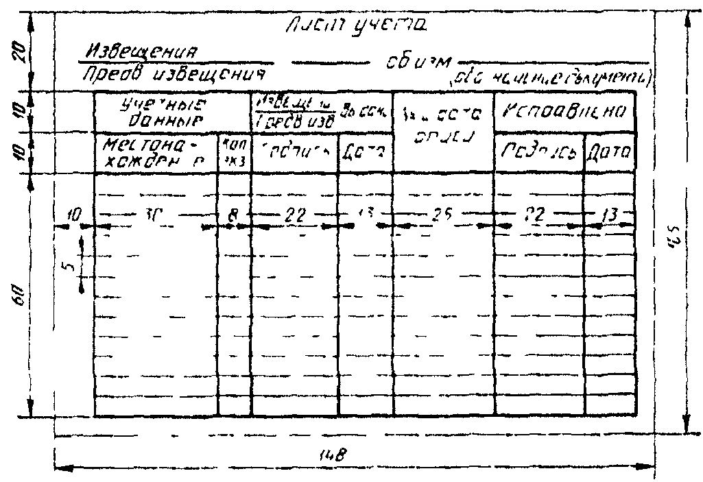 7.1. Лист учета извещения и предварительного извещения (далее - лист учета) предназначается для учета рассылки копий ИИ или ПИ внешним абонентам документов, изменяемым по данным ИИ или ПИ, и подразделениям данного предприятия, а также для учета проведения изменений по ИИ или ПИ на данном предприятии.