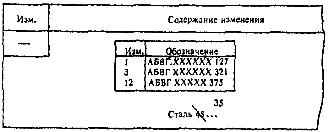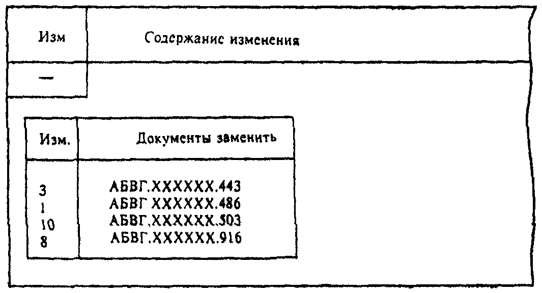 ГОСТ 2.104 (за исключением графы "Изм.") или в блоке внесения изменений по