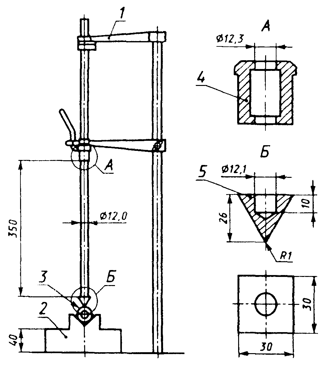 1 - фиксирующий рычаг; 2 - основание массой 10 кг;