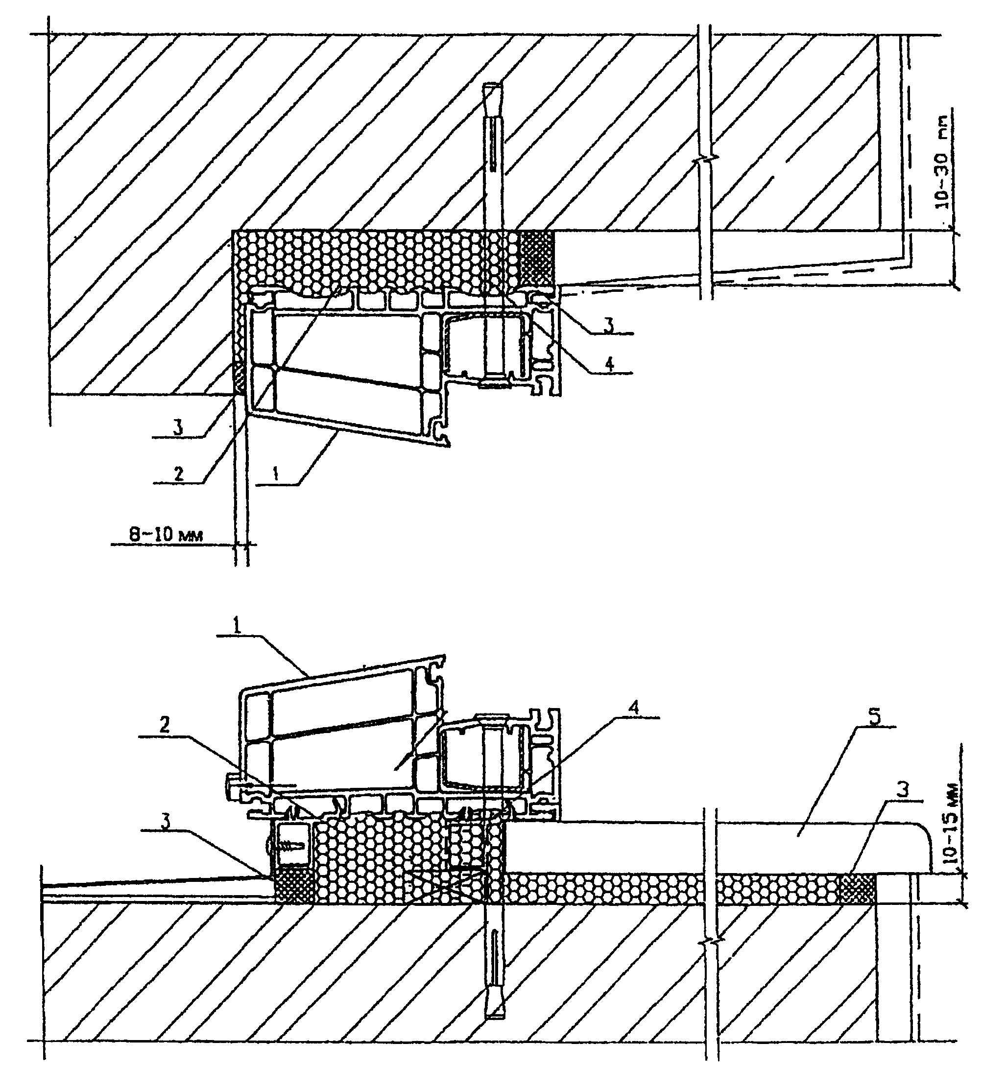 4 - монтажный дюбель; 5 - подоконная доска