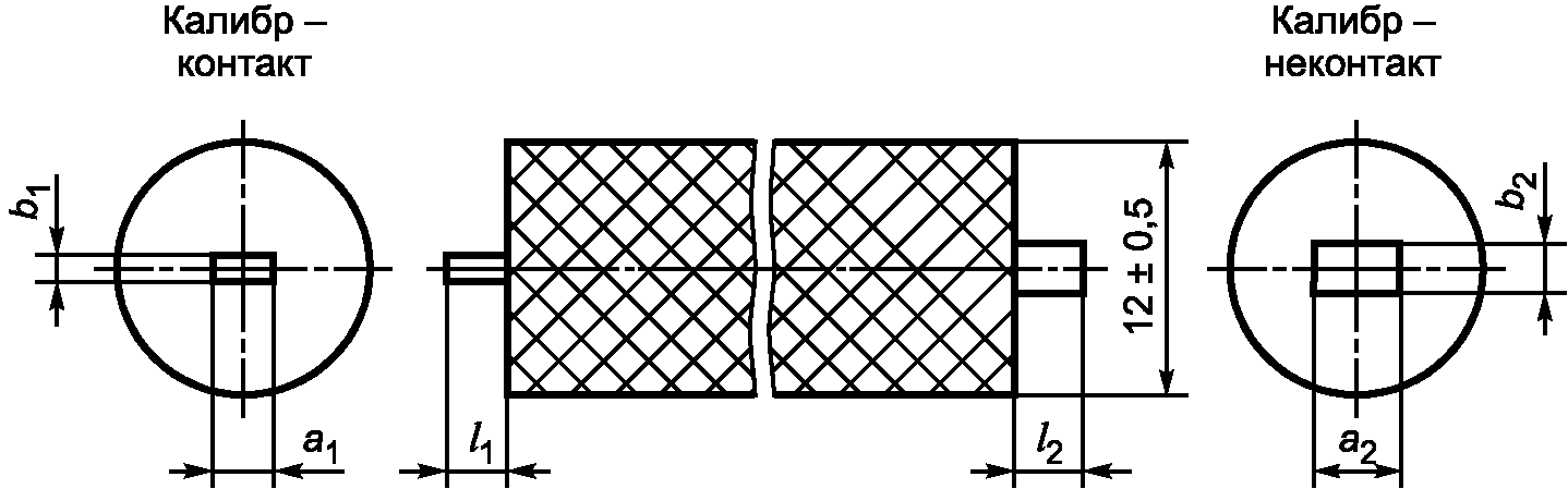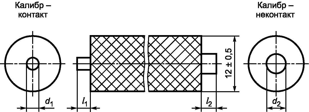 Когда этот калибр полностью вставлен, самая длинная вилка ("калибр - контакт") должна устанавливать контакт, а самая короткая вилка ("калибр - неконтакт") не должна устанавливать контакт.