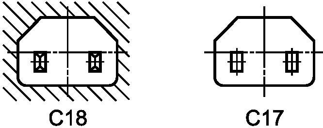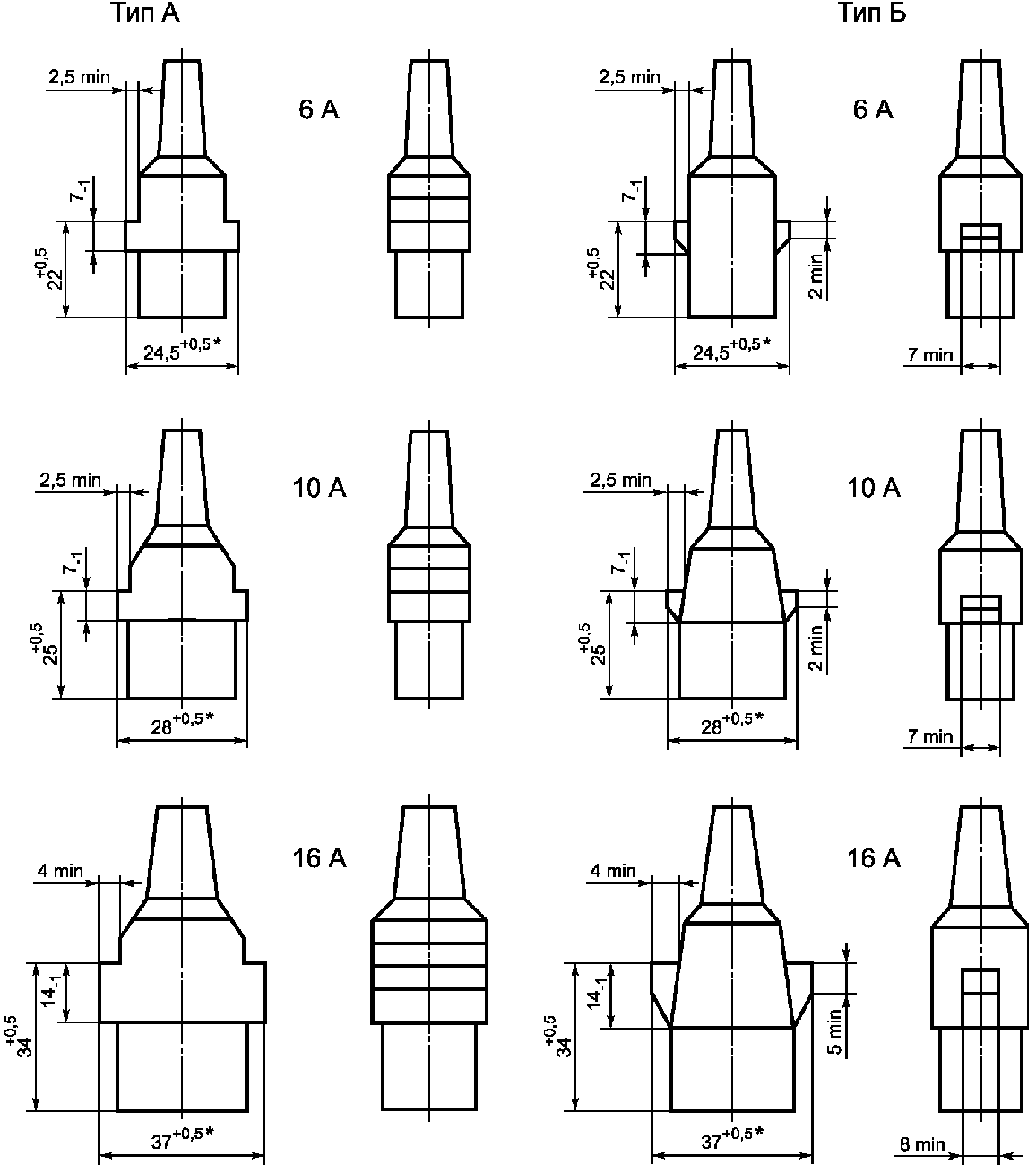 Размер | Пред. откл. | Номинальный ток приборной розетки, А | Размер | Пред. откл. | Номинальный ток приборной розетки, А |