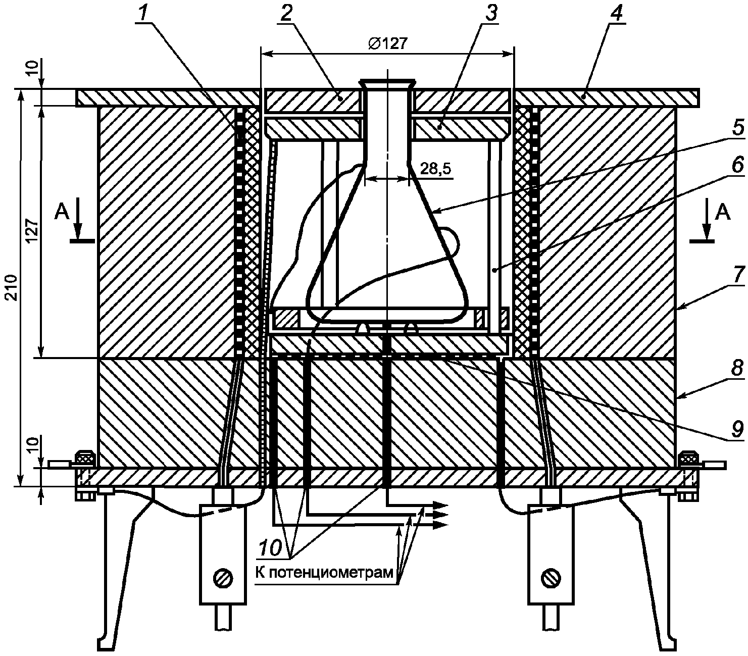 Испытательная колба должна быть равномерно прогрета горячим воздухом печи. Удовлетворяющие этим требованиям типы печей описаны в