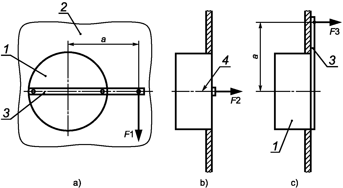 1 - монтажная опора; 2 - шарнир; 3 - образец