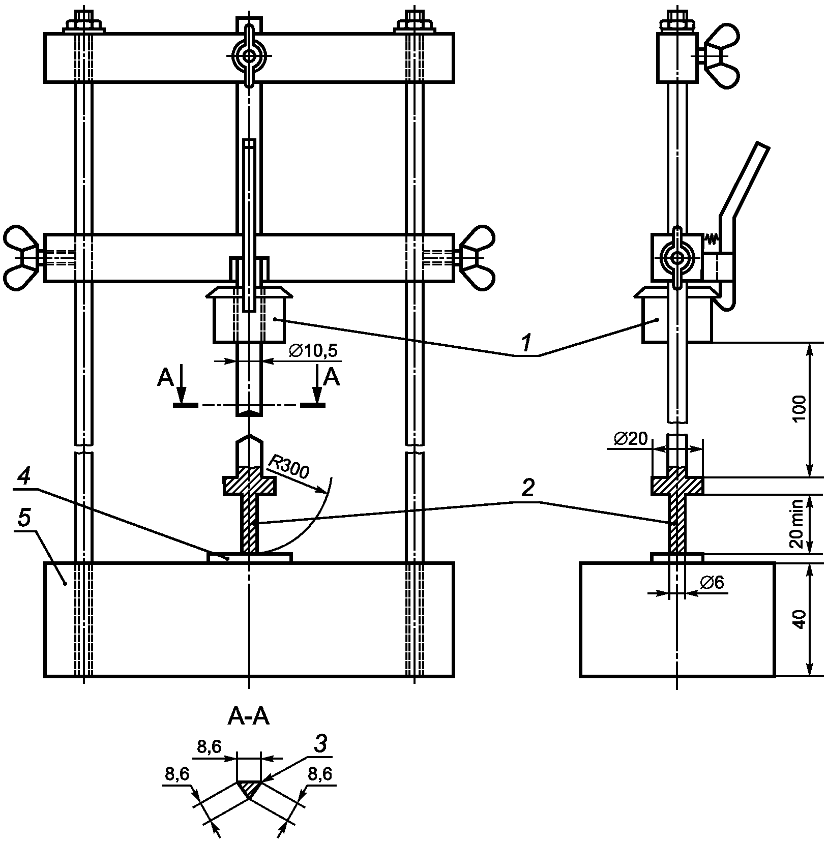 1 - испытательный стержень (металлический);