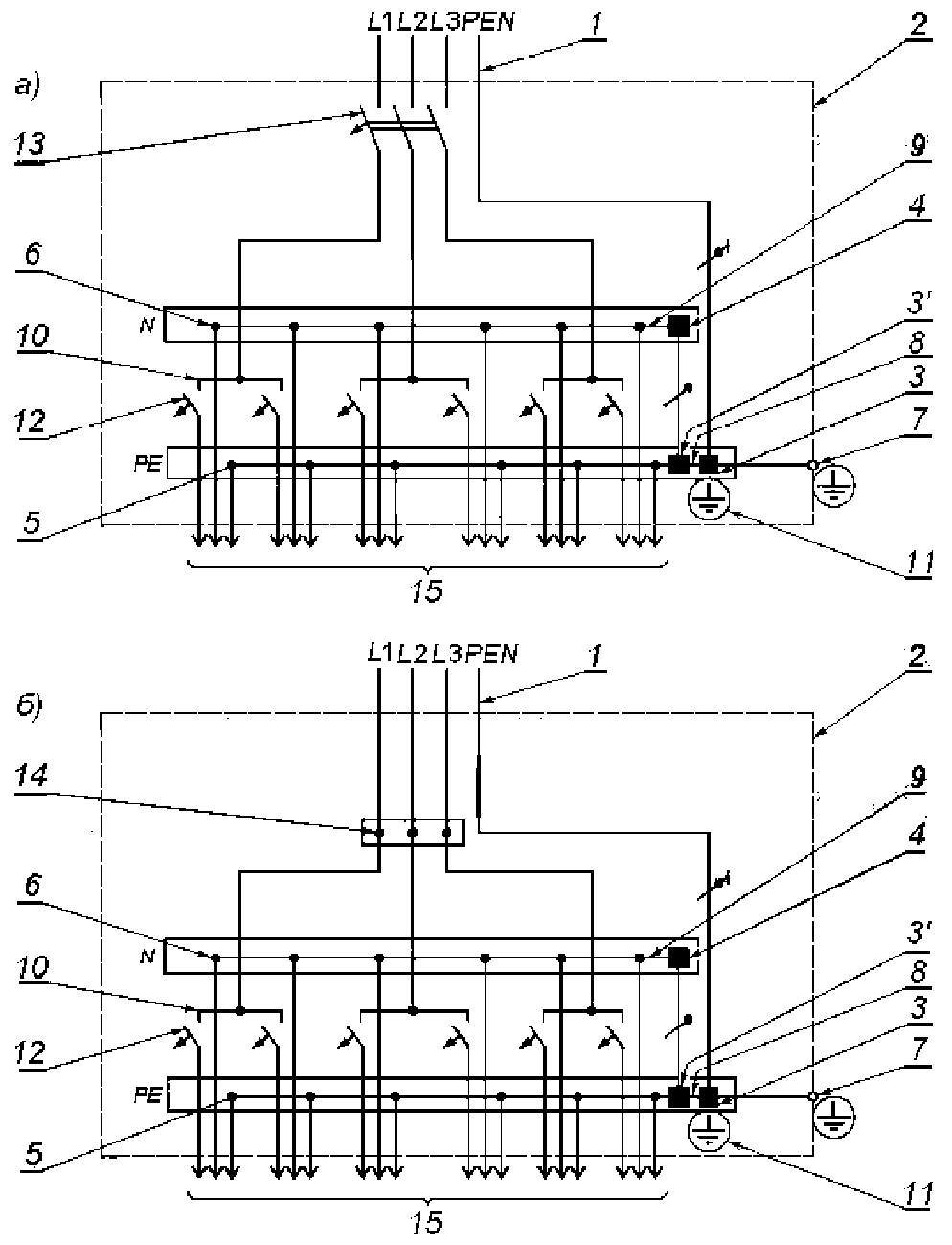Стандарт распространяется на щитки, присоединяемые к трехфазным сетям с типами систем заземления TN-S, TN-C, TN-C-S, TT по ГОСТ 30331.2. Схемы присоединения щитков с различными типами систем заземления приведены в