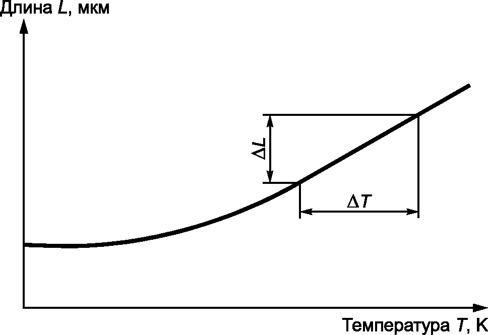 Примечание. Могут быть определены дифференциальный коэффициент линейного теплового расширения и средний коэффициент линейного теплового расширения.
