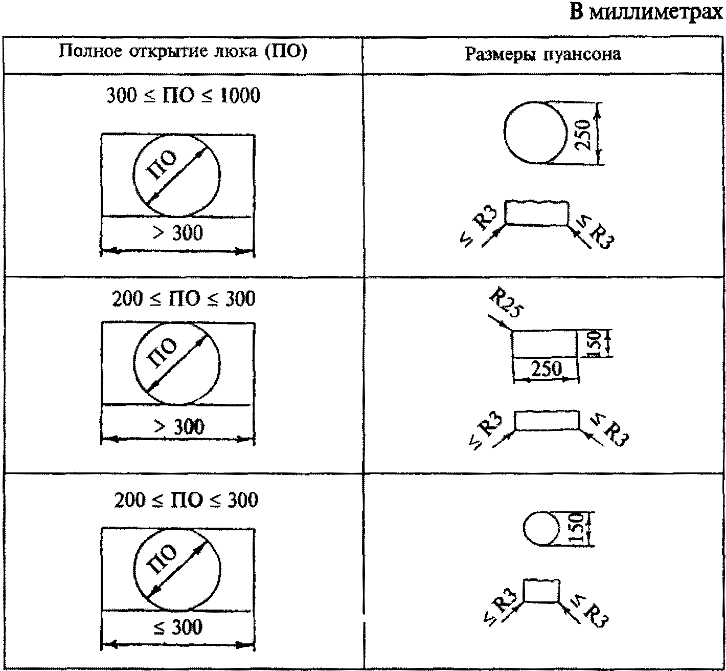 РАЗМЕРЫ ПУАНСОНОВ В ЗАВИСИМОСТИ ОТ ПОЛНОГО ОТКРЫТИЯ ЛЮКА