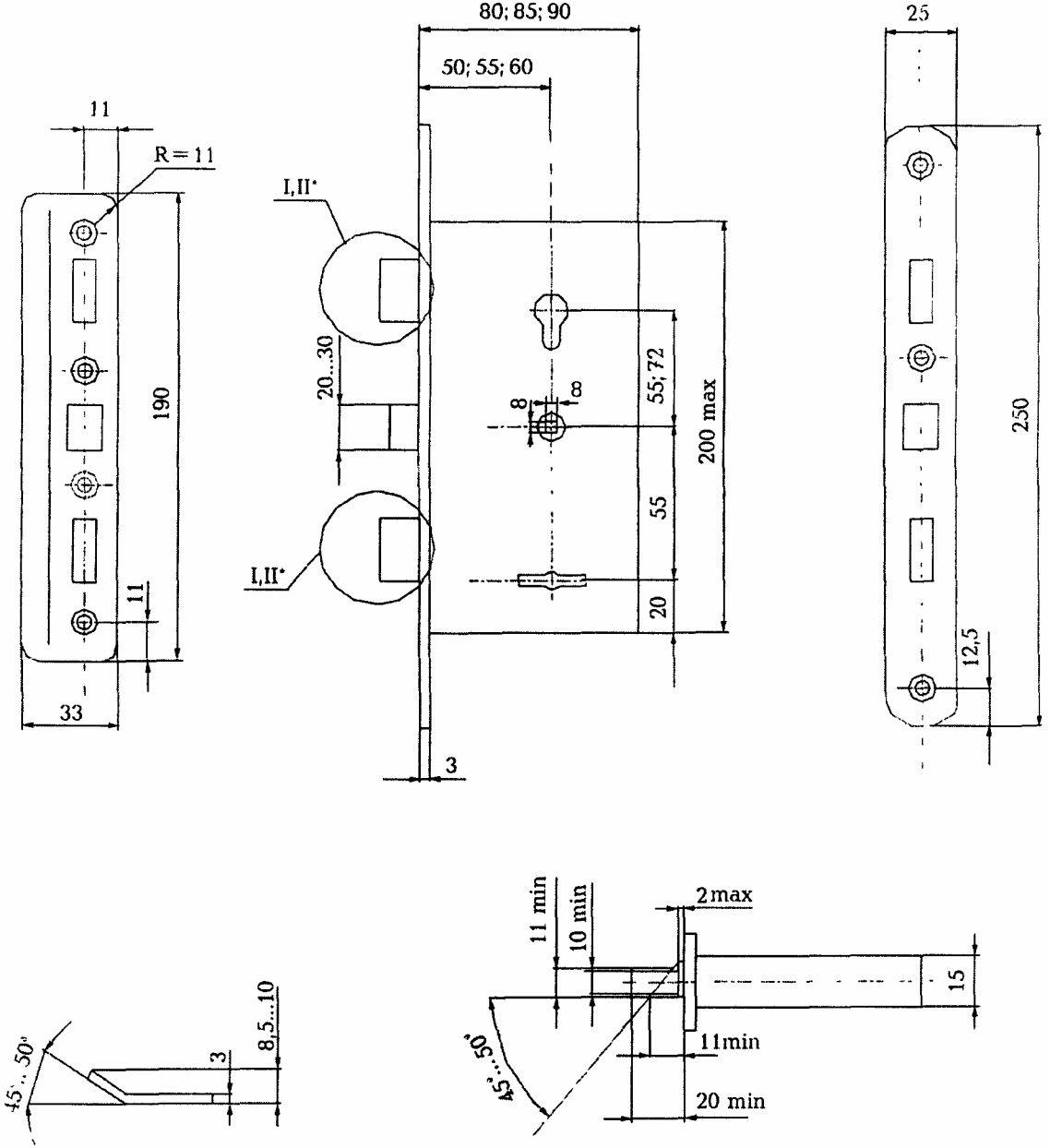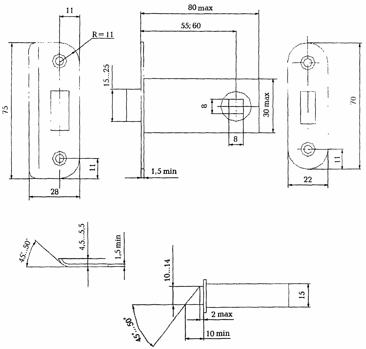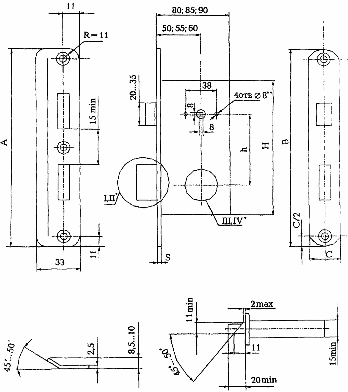 Рисунок В.40. Пример накладок для врезных сувальдных замков, тип Н3