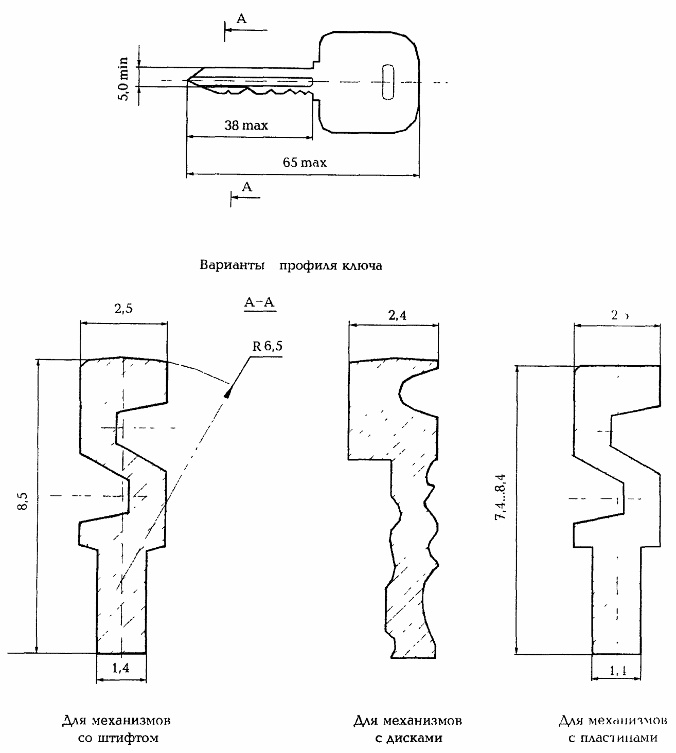 - глубина нарезки на 3-й позиции (для 5-ти штифтового) и на 3-й и 4-й позициях (для 6-ти штифтового) должна отличаться от глубин какой-либо из соседних нарезок как минимум на три перепада;