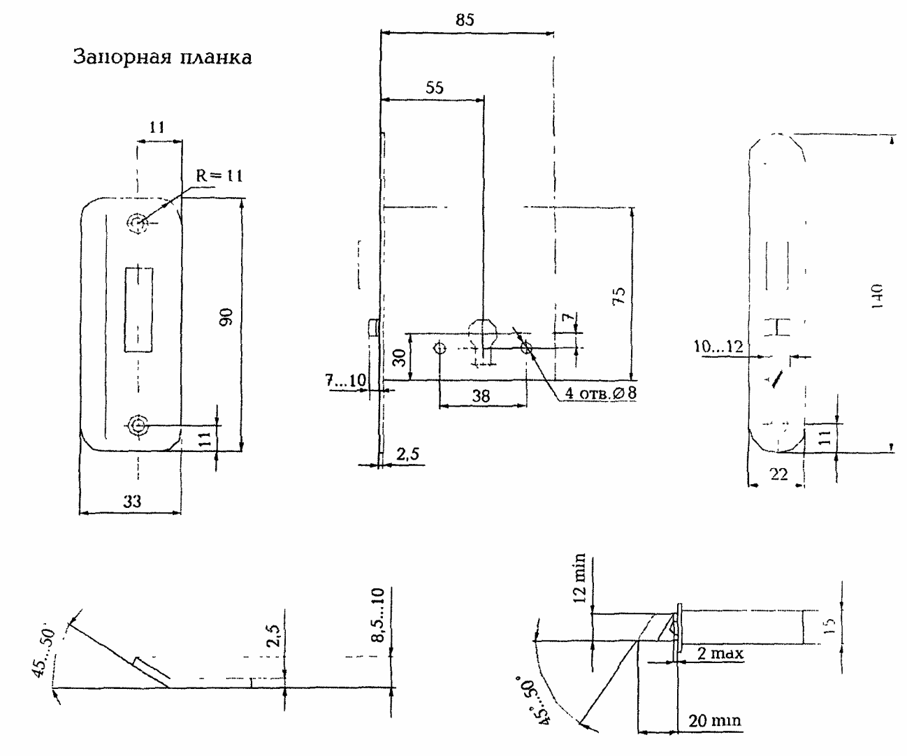 Расположение отверстий под крепление ручек для защелок стандартом не устанавливается.