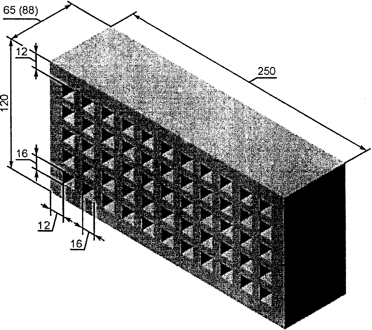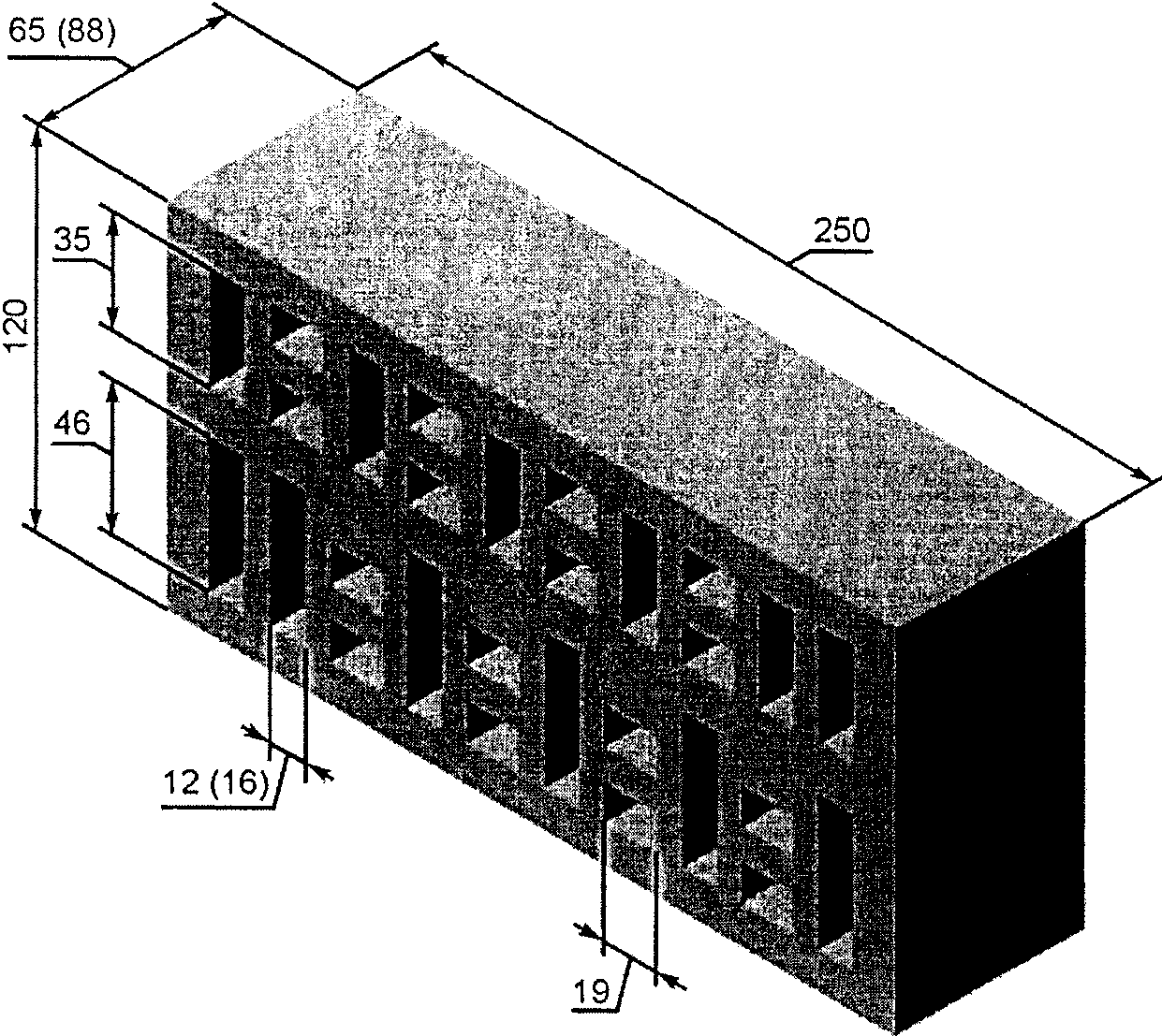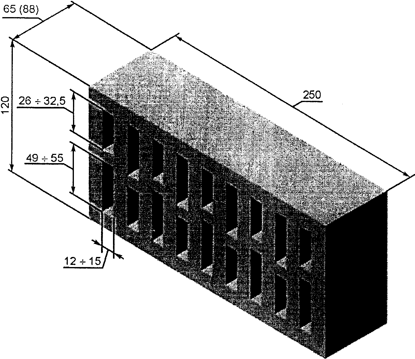 3.2. Кирпич нормального формата (одинарный): изделие номинальными размерами 250 x 120 x 65 мм.