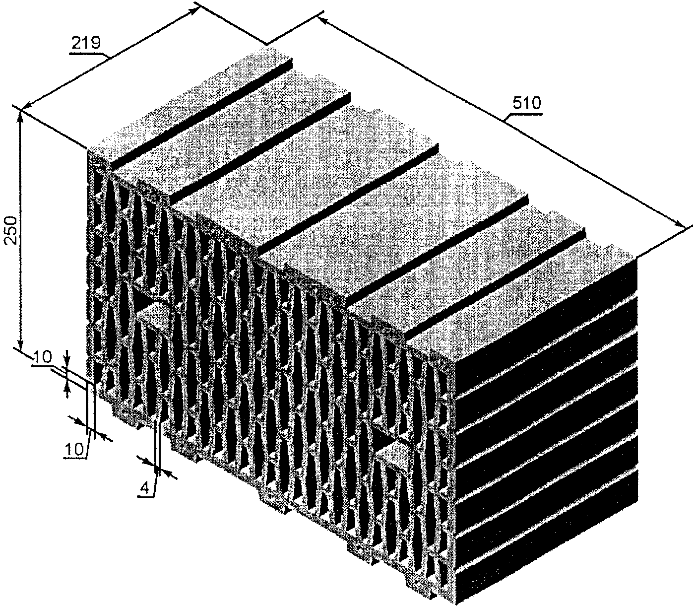 из крупноформатного камня размерами 510 x 250 x 219 мм