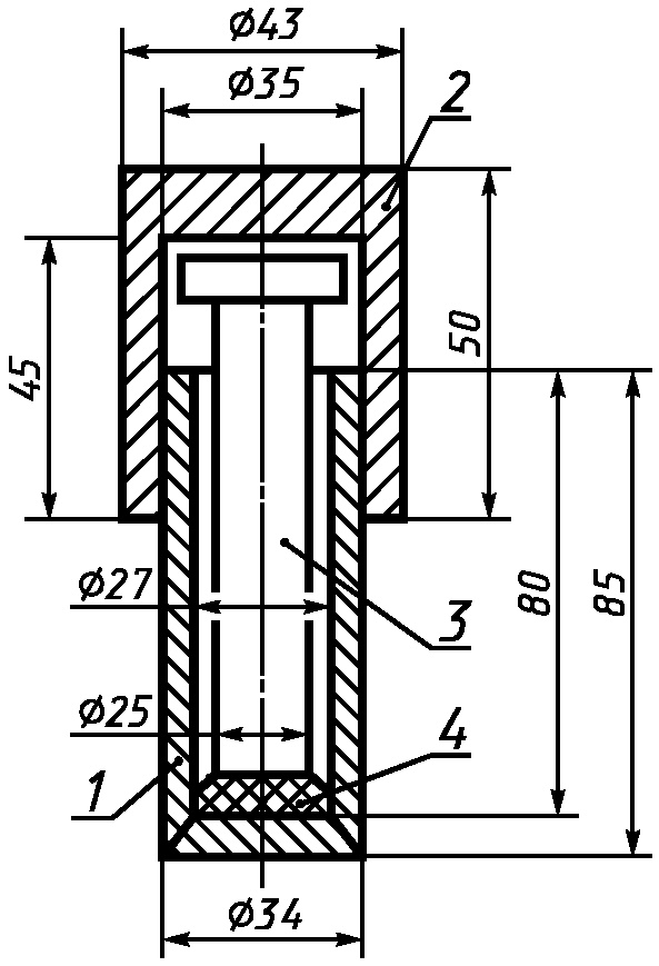 3.1. При нагреве торец образца, подлежащий охлаждению водой, должен быть предохранен от окисления и обезуглероживания. Образец помещают в стальной цилиндрический стаканчик с крышкой. Торцом, предназначенным для охлаждения, образец ставят на графитовую пластинку или на слой отработанного графита. Конструкция и размеры стаканчика приведены на черт. 3.