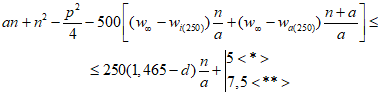 Дополнительное ограничение внутренних сечений вагонов, имеющих большую базу, с учетом кривых радиуса между 250 м и 150 м. Этот член проявляется, если , т.е. при величине базы a, близкой к 20 м | |