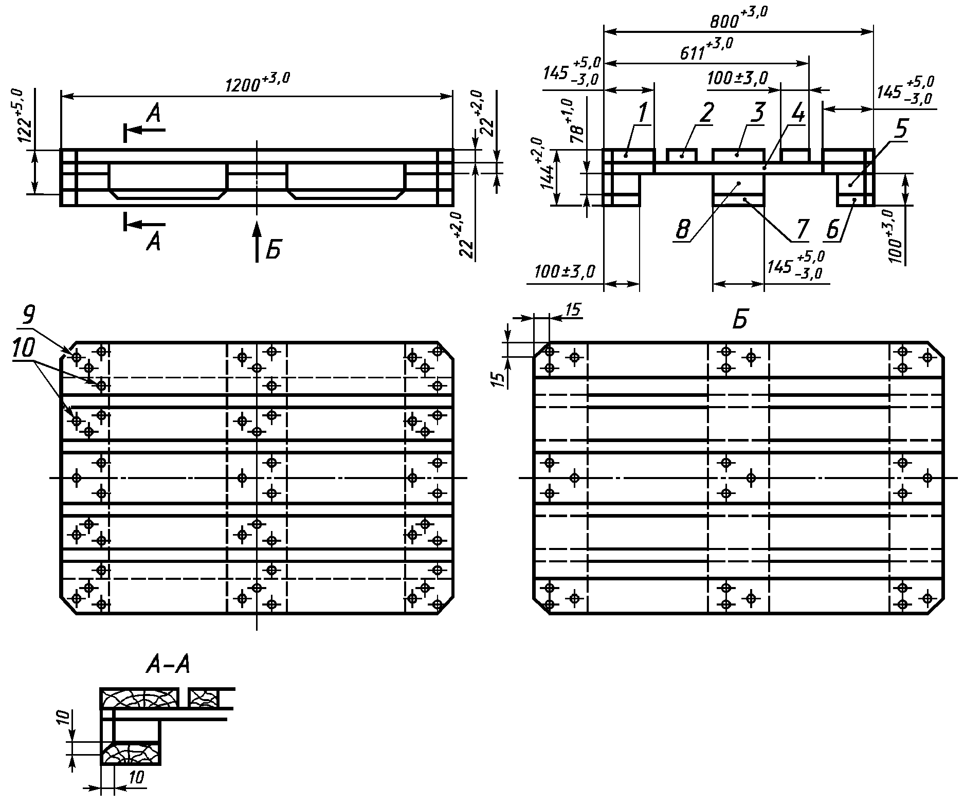 1.2. Конструкция и размеры поддона и его деревянных деталей должны соответствовать указанным на