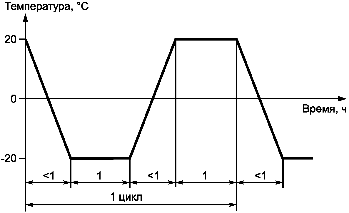Образцы серии A помещают в морозильную камеру и выдерживают при температуре минус (20 +/- 2) °C в течение 1 ч. Образцы извлекают из морозильной камеры, погружают в воду температурой плюс (20 +/- 2) °C и выдерживают в воде в течение 1 ч (см. рисунок 2).