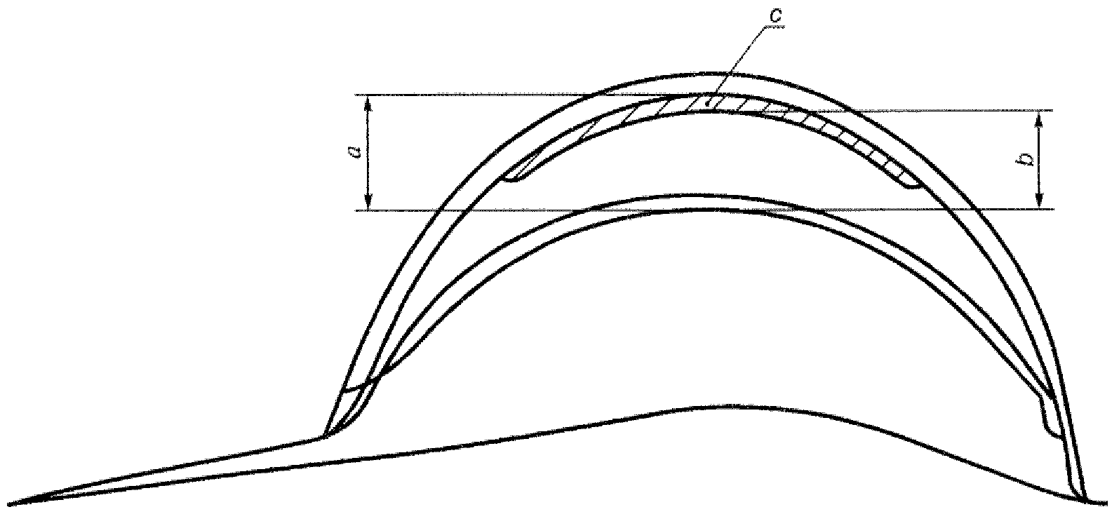 3.13. внутреннее вертикальное расстояние (internal vertical distance): Разница по высоте высшей точки наружной поверхности защитной каски над высшей точкой макета головы в случаях, когда в каске имеется внутренняя оснастка и когда корпус каски без оснастки надет на макет головы.