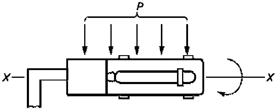 Светильник поворачивают вокруг оси x-x на 180° в течение 10 мин.