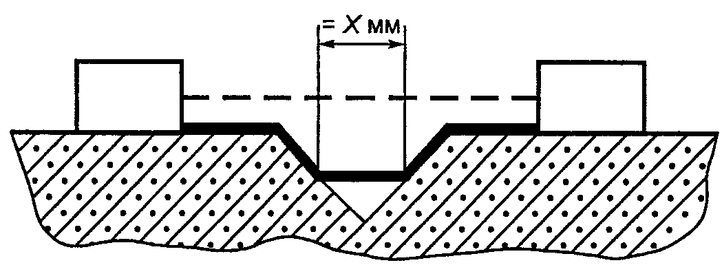b) любые углубления замкнуты изоляционной перемычкой длиной X, помещенной наименее благоприятным образом;