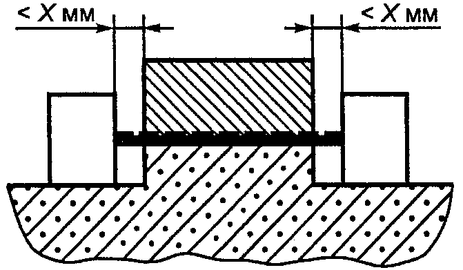 Если размер соответствующих тем же условиям ЗАЗОРОВ оказывается менее 3 мм, то минимальную ширину паза допускается уменьшить до одной трети размера ЗАЗОРА.