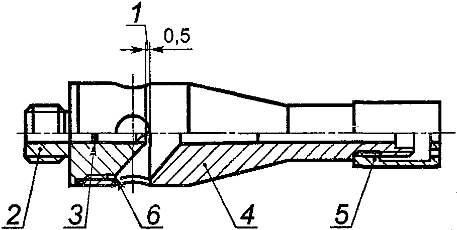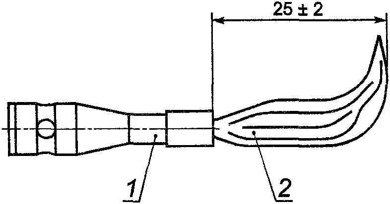 (2,0 +/- 0,5) мм; 2 - распорный штырь диаметром 2 мм;