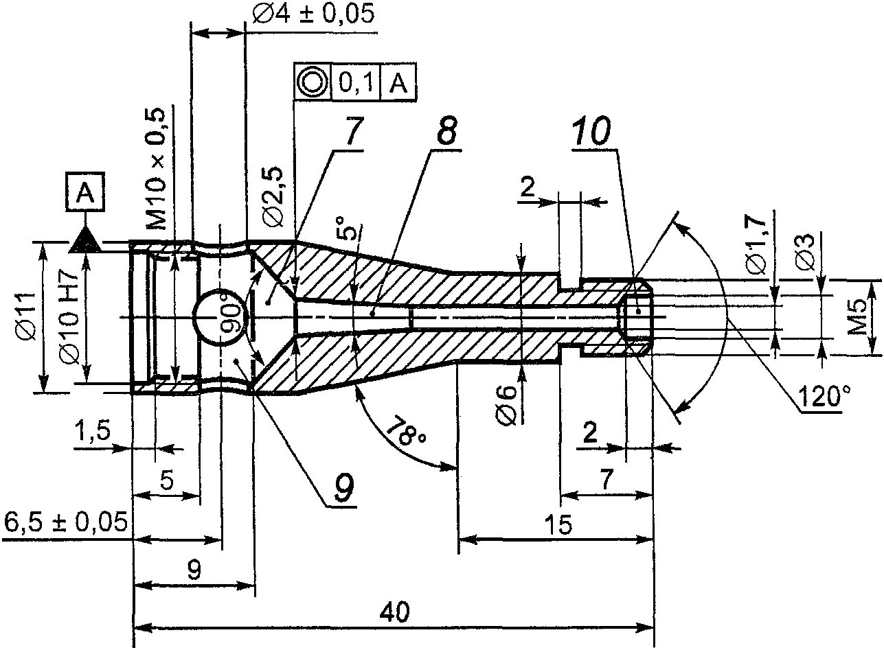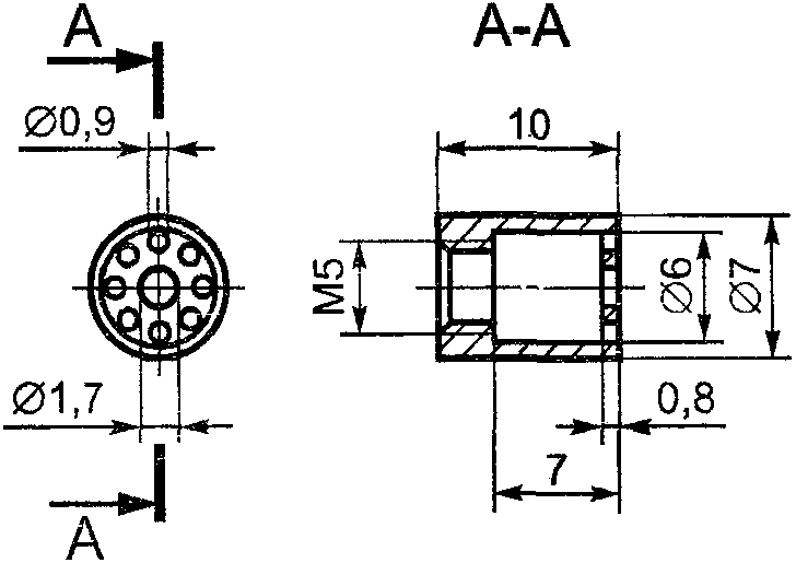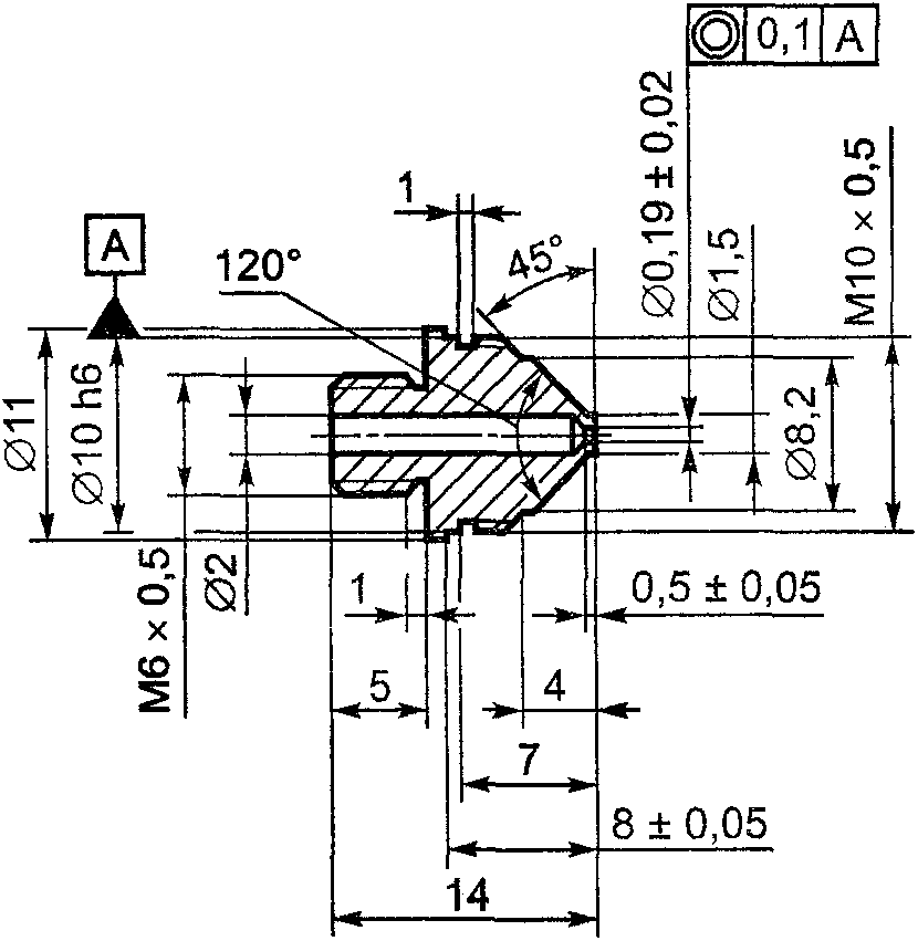 рисунок 2b) должен составлять (0,19 +/- 0,02) мм. Отверстие необходимо просверлить, и после сверления все заусенцы необходимо удалить с обоих концов просверленного отверстия, не закругляя углов.