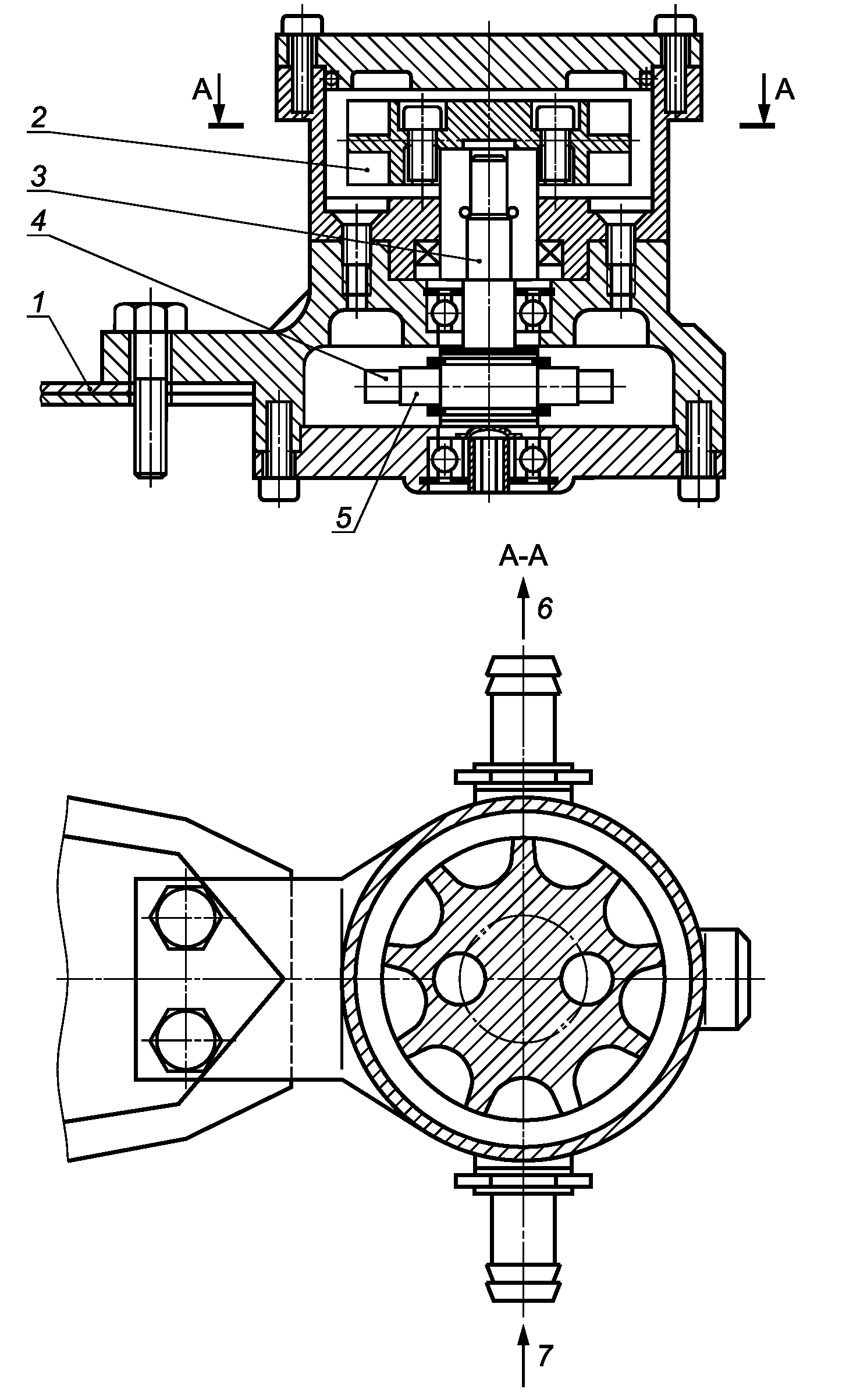 1 - шина; 2 - крыльчатка центробежного насоса; 3 - вал;
