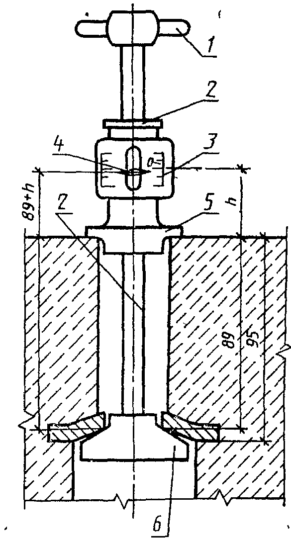 1 - ручка; 2 - шток; 3 - шкала; 4 - указатель;