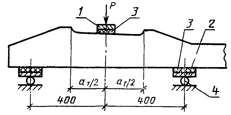 табл. 2. Эту нагрузку поддерживают постоянной в течение 2 мин, после чего осматривают боковые поверхности с двух сторон шпалы у испытываемого сечения с целью обнаружения видимых трещин в растянутой зоне бетона. Поверхность бетона при этом не смачивают. Освещенность поверхности бетона - не менее 3000 лк. Для измерения длины трещин применяют металлическую линейку, а для ширины раскрытия трещин - измерительную лупу по