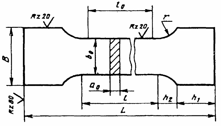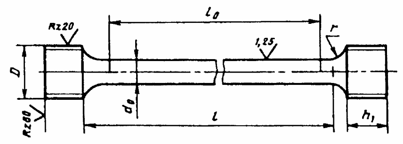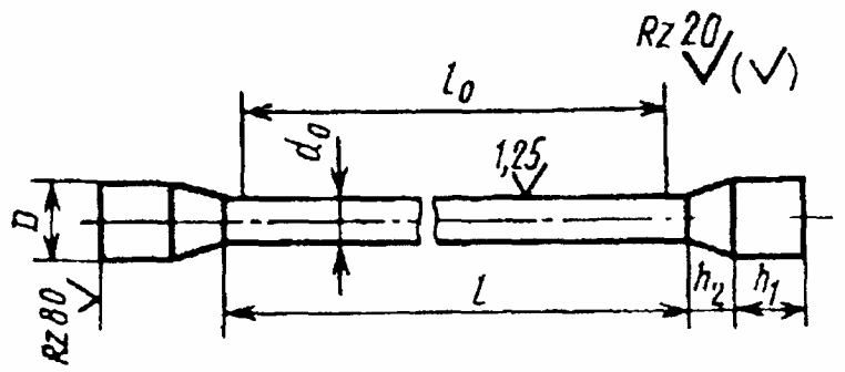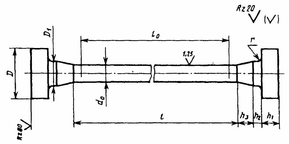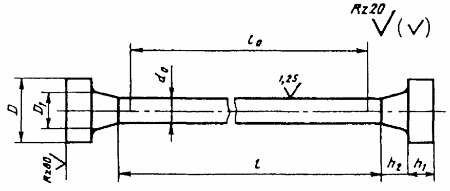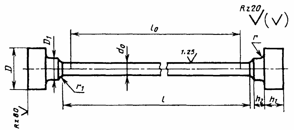 1.5. При отсутствии других указаний в нормативно-технической документации на металлопродукцию значение параметров шероховатости обработанных поверхностей Ra образцов должно быть не более 1,25 мкм - для поверхности рабочей части цилиндрического образца и Rz не более 20 мкм - для боковых поверхностей в рабочей части плоского образца.