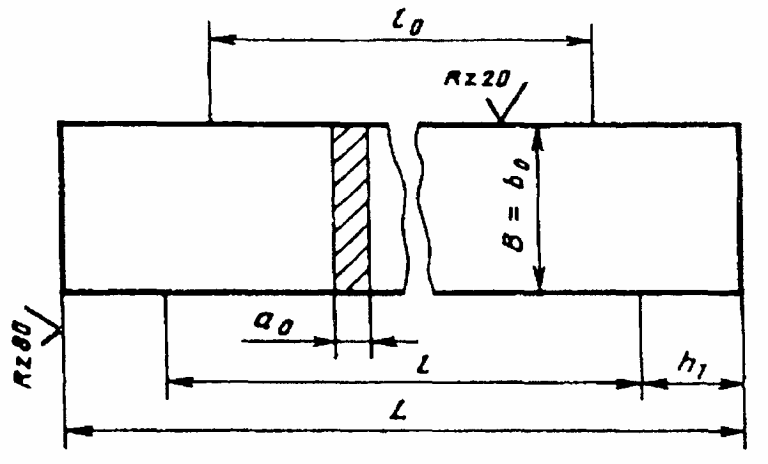 Для плоских образцов соотношение между шириной и толщиной в рабочей части образца не должно превышать 8:1.