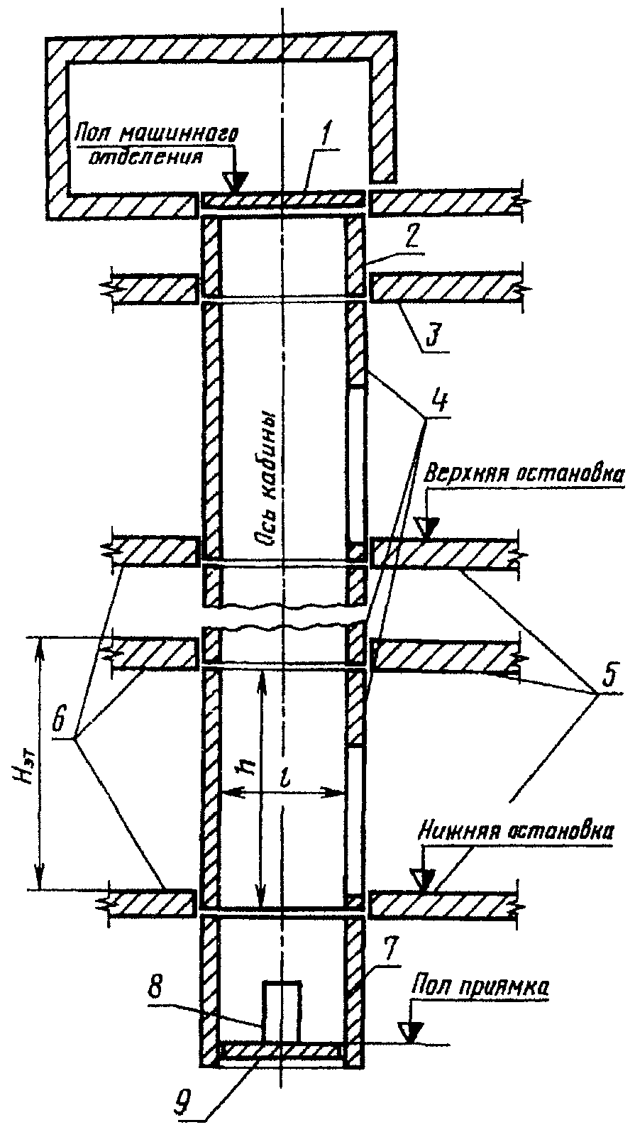 Черт. 1. Схема шахты лифта