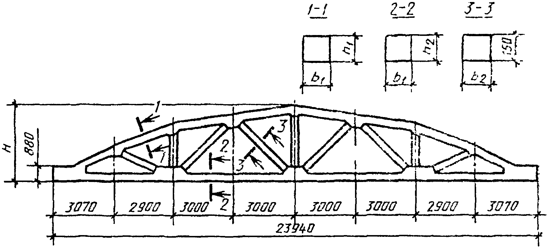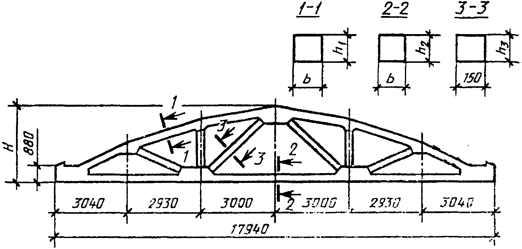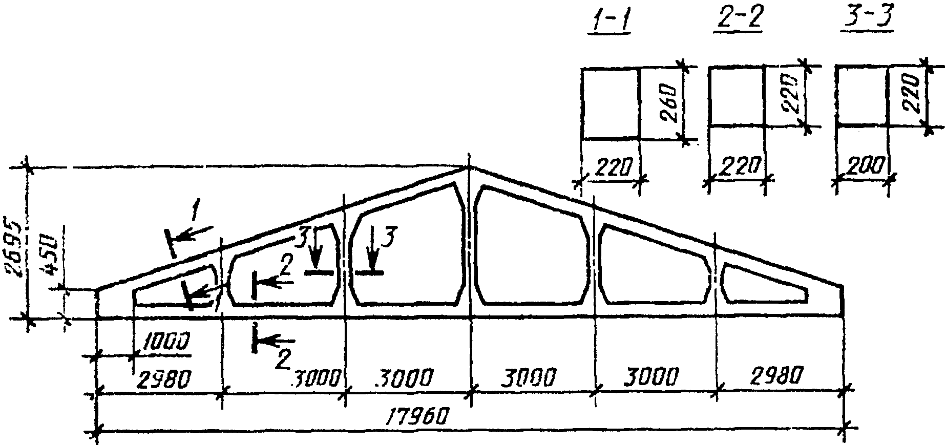 1.2.4. Фермы длиной 8960 мм и более изготовляют предварительно напряженными, а длиной 5960 мм - с ненапрягаемой арматурой. Фермы длиной 8960 мм допускается изготовлять с ненапрягаемой арматурой.