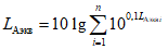 3. Производим последовательное сложение эквивалентных уровней звука при помощи
