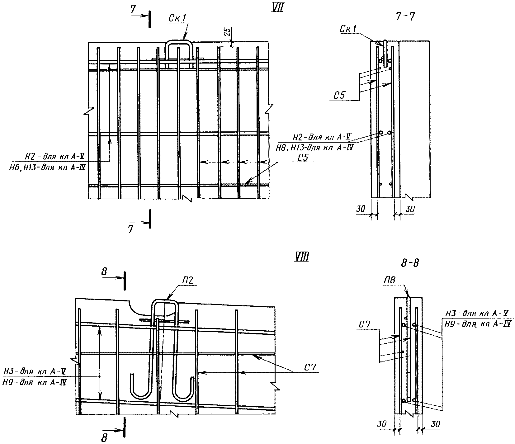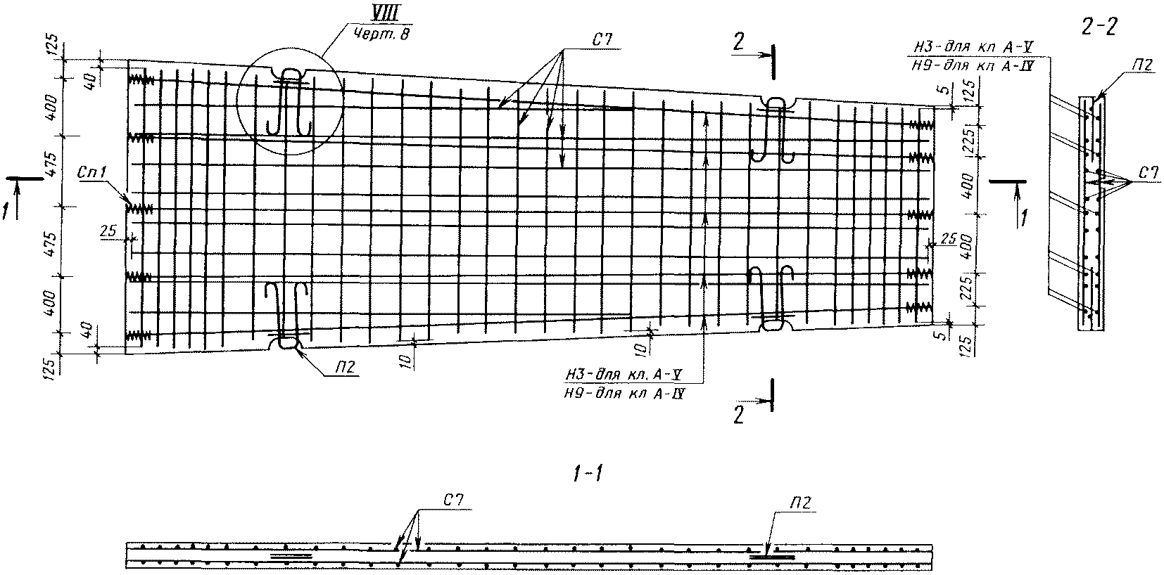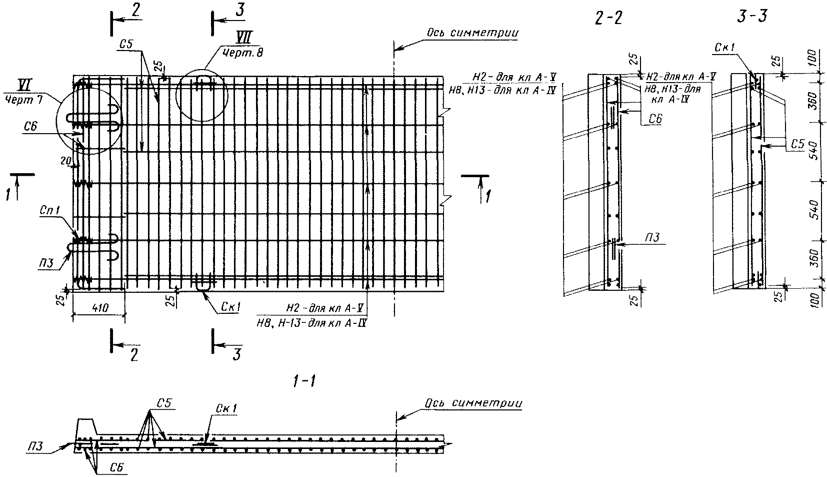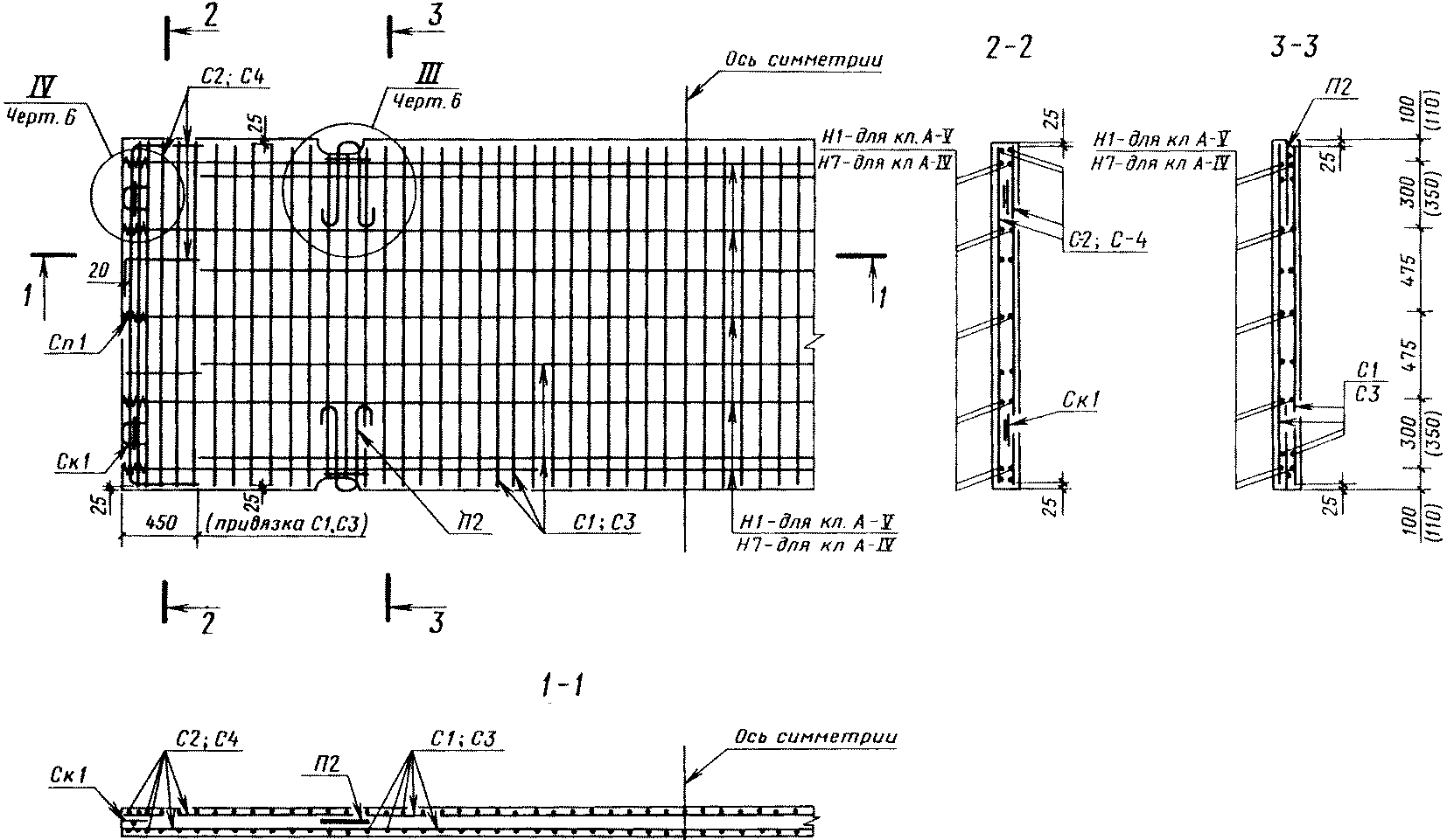 5. Армирование плит должно соответствовать приведенному на черт. 1 - 8.