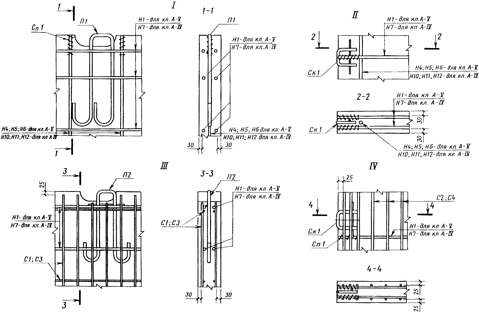 Примечание. Допускается применение монтажных петель П1а и П2а взамен петель соответственно П1 и П2.