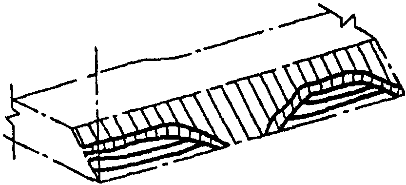Шахматный прерывистый шов Шахматный шов | Двухсторонний прерывистый шов, у которого промежутки на одной стороне стенки расположены против сваренных участков шва с другой ее стороны ![]() | |||||