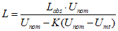 где L - яркость, приведенная к номинальному напряжению сети