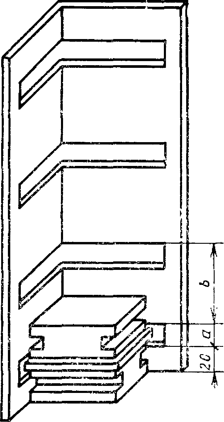 для колодок типа Б - из плоского основания с закрепленными перпендикулярно к нему четырьмя металлическими стержнями, которые продевают в сквозные отверстия колодок