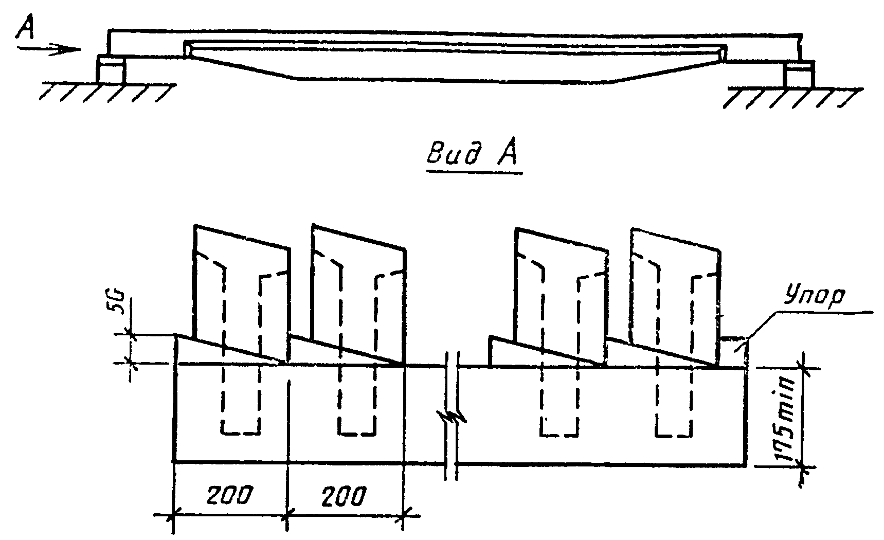 5.3.1. Прогоны следует транспортировать и хранить в положении, при котором ребро прогона находится в вертикальной плоскости. Прогоны должны укладываться на инвентарные прокладки в зоне опорных закладных изделий. Прокладки необходимо располагать строго по одной вертикали.