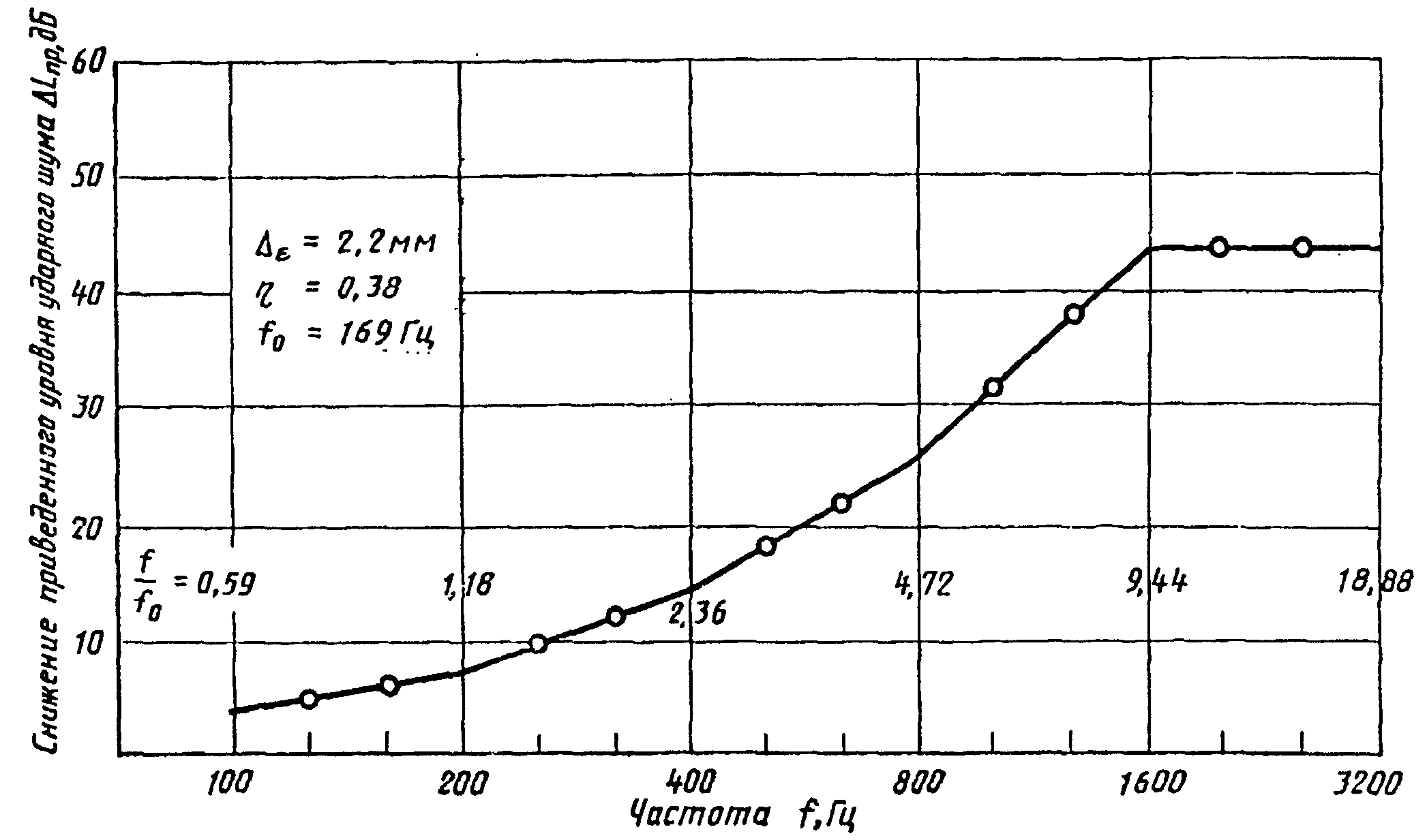 , Гц, и строят зависимость снижения приведенного уровня ударного шума