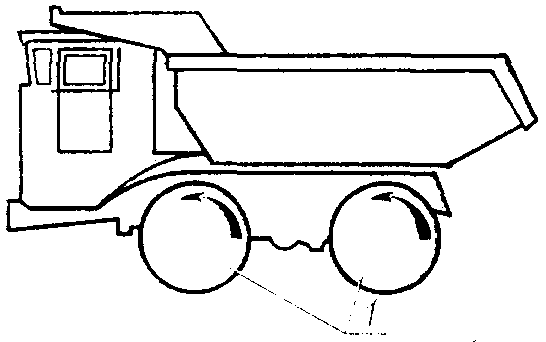 распределение массы груженого землевоза: передний мост; ведущий мост; поддерживающий мост;
