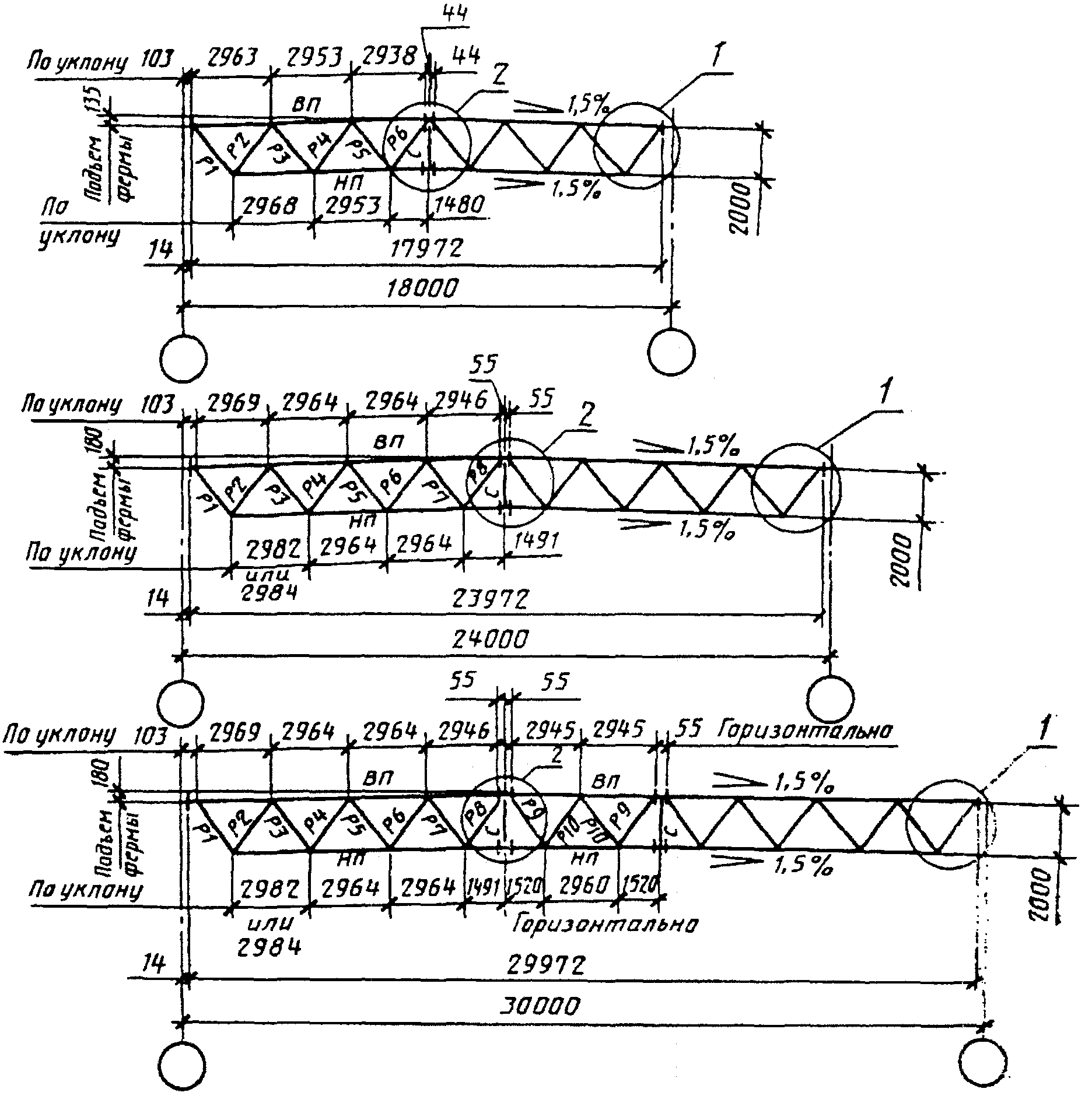 1.2.2. Схемы, основные размеры и узлы ферм должны соответствовать указанным на черт. 1.