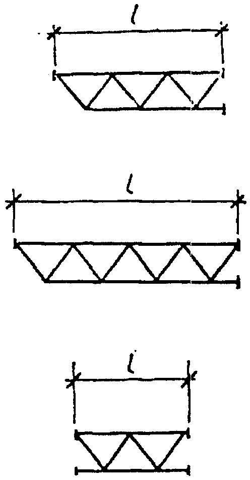 Отклонение от прямолинейности сжатых поясов из плоскости фермы на длине участка l между точками закрепления: | | |