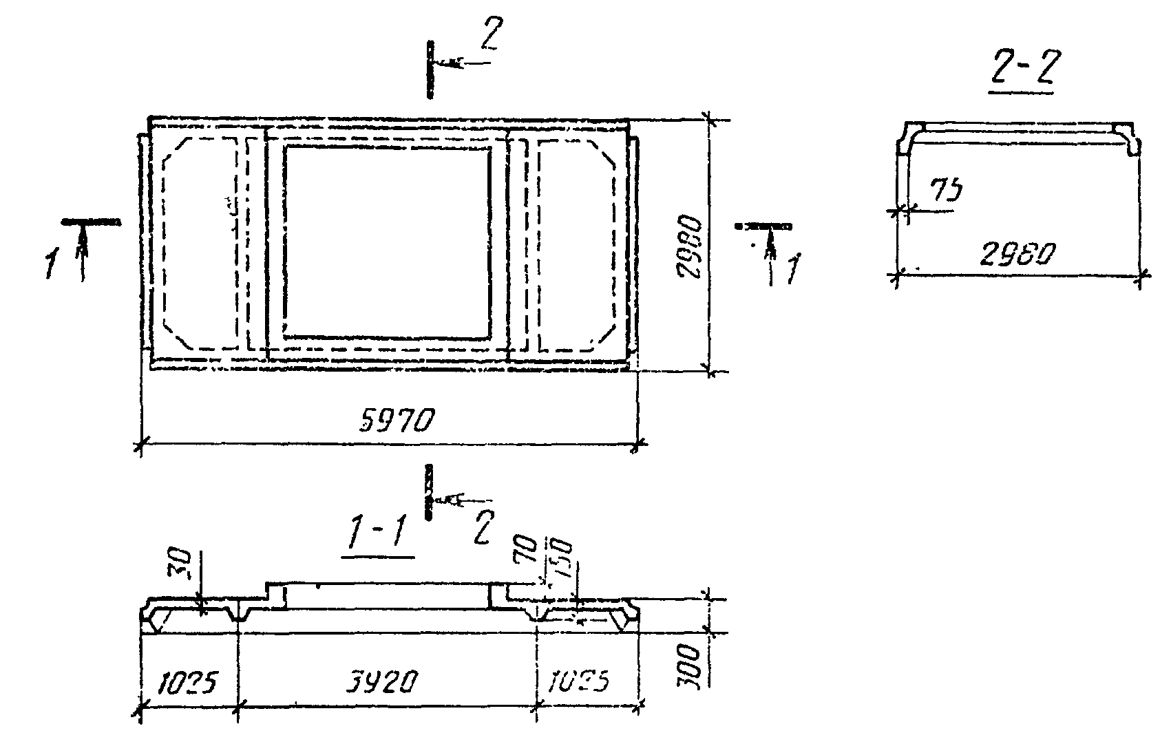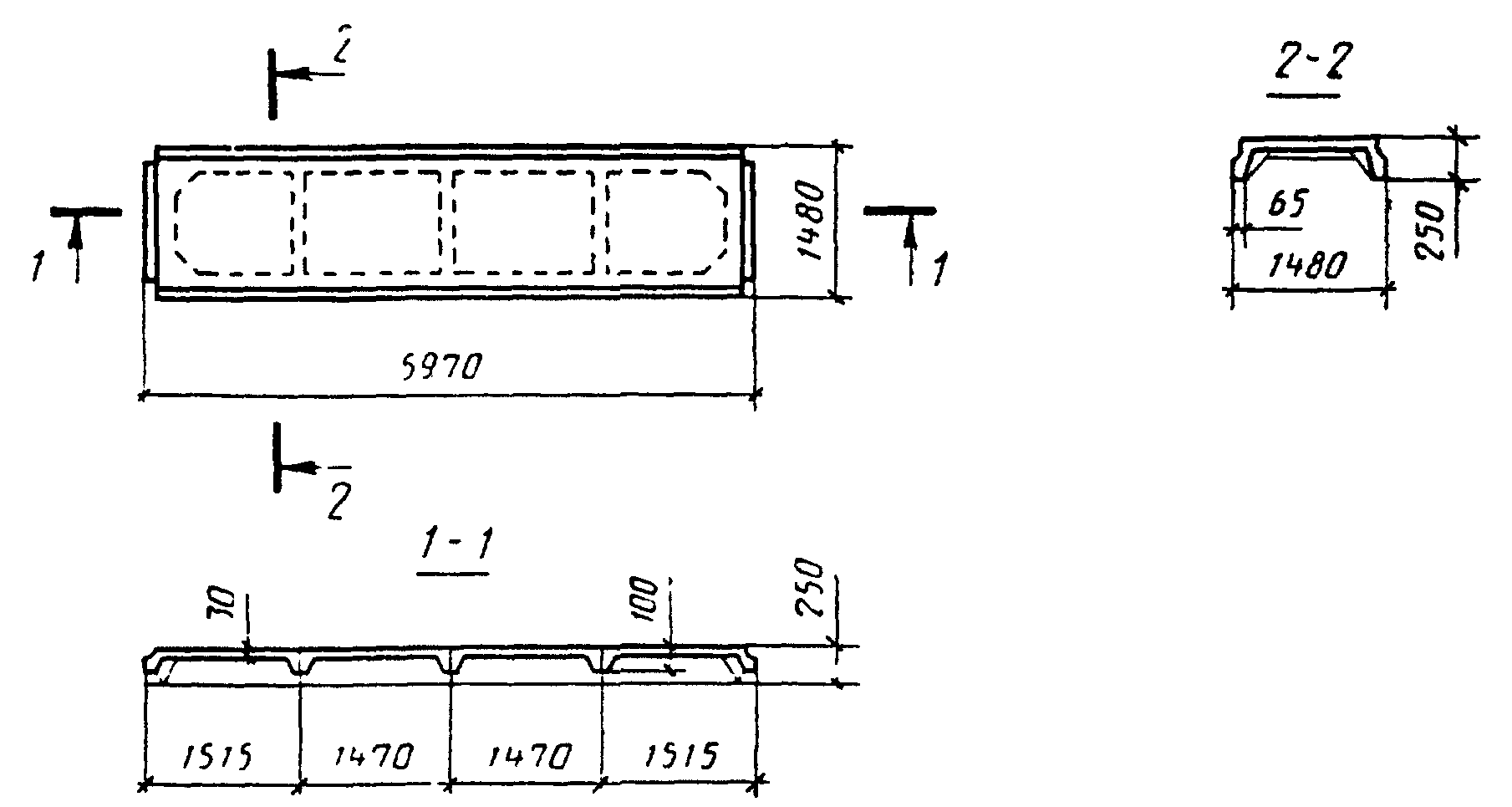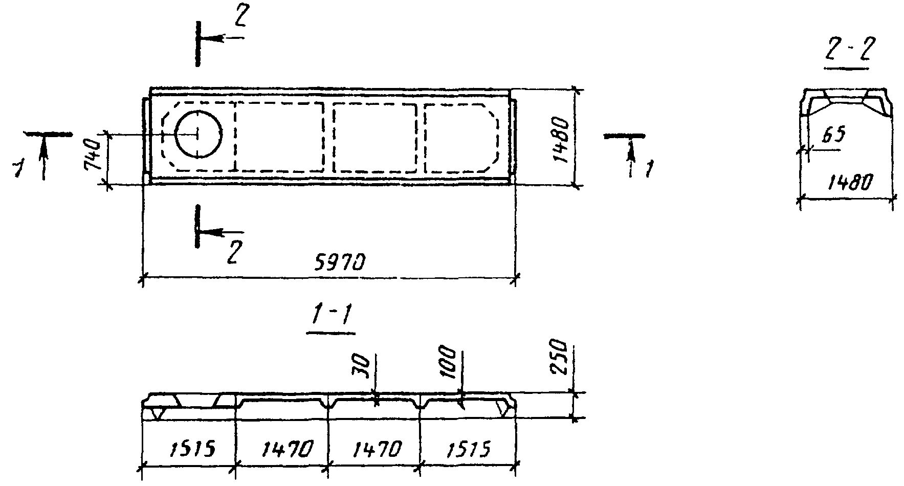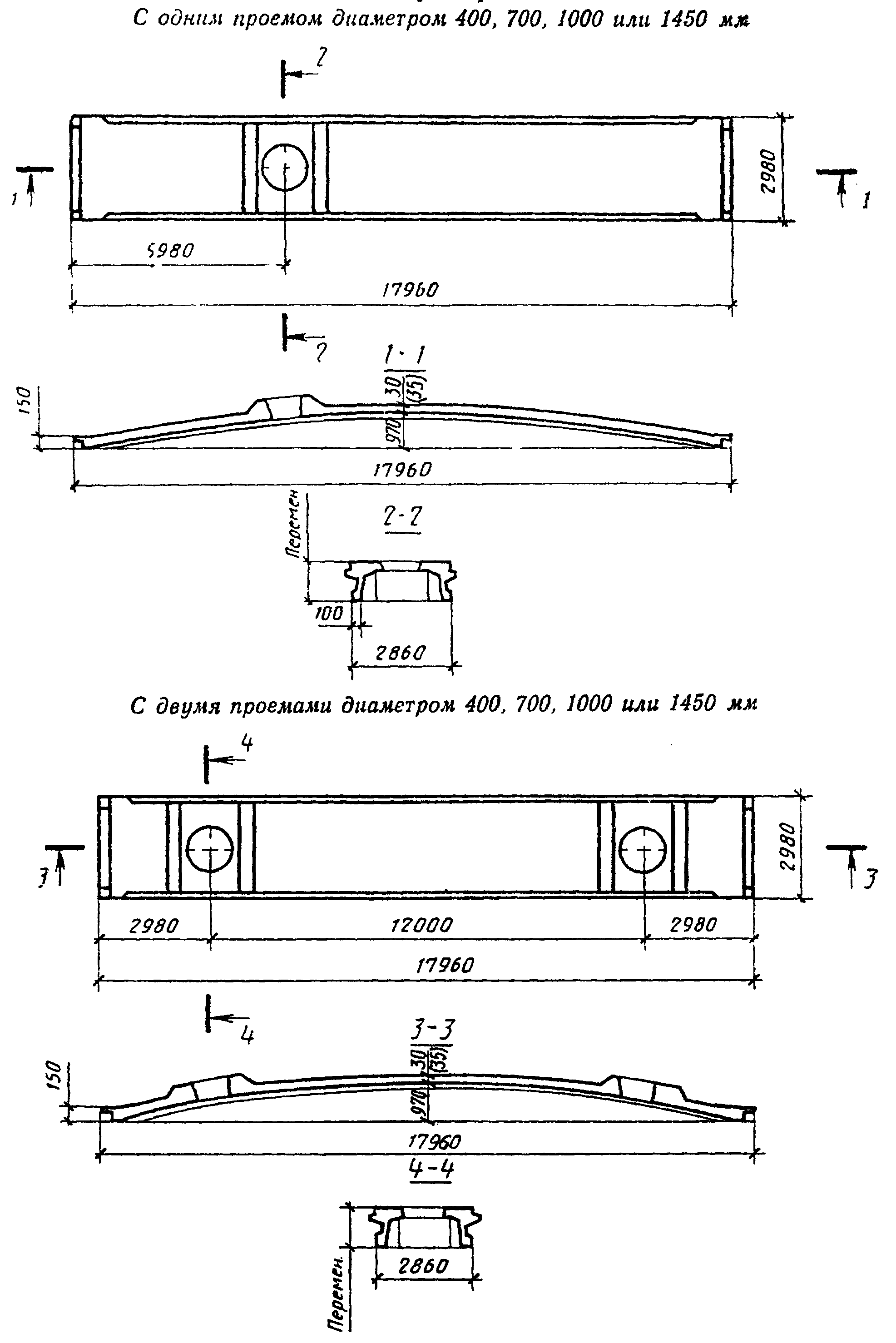 1.2.6. В случаях, предусмотренных проектом здания, плиты могут иметь дополнительные отверстия, вырезы в полках, углубления на наружных гранях продольных ребер для устройства бетонных шпонок между смежными плитами, а также дополнительные закладные изделия.