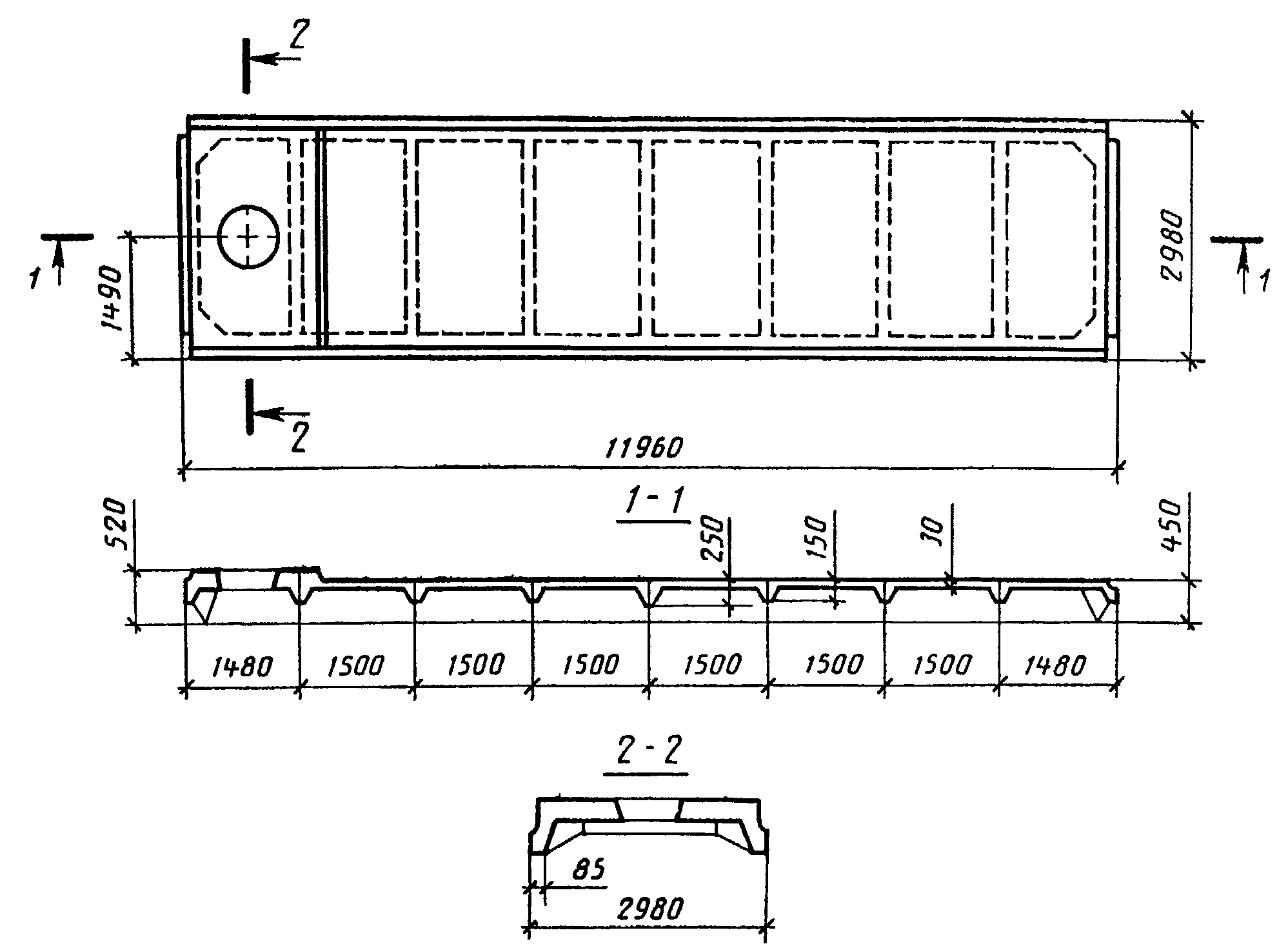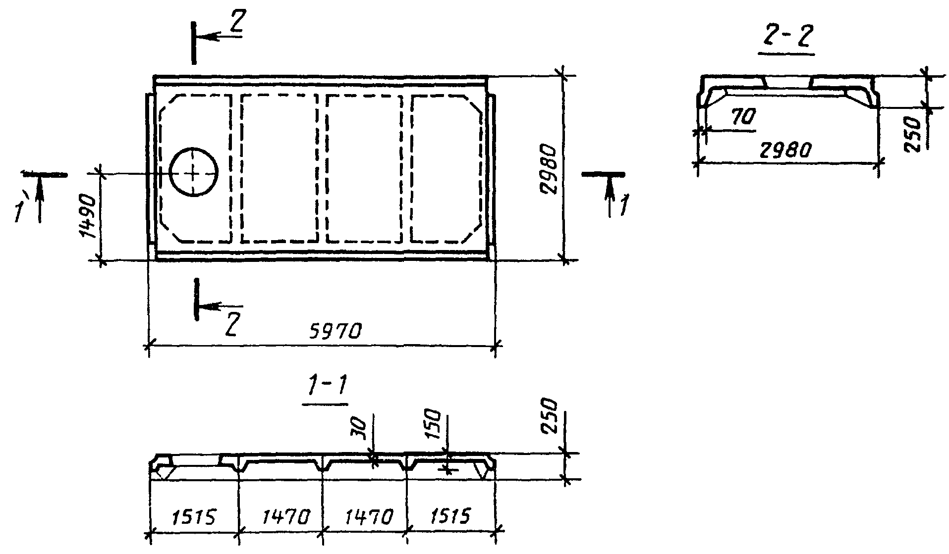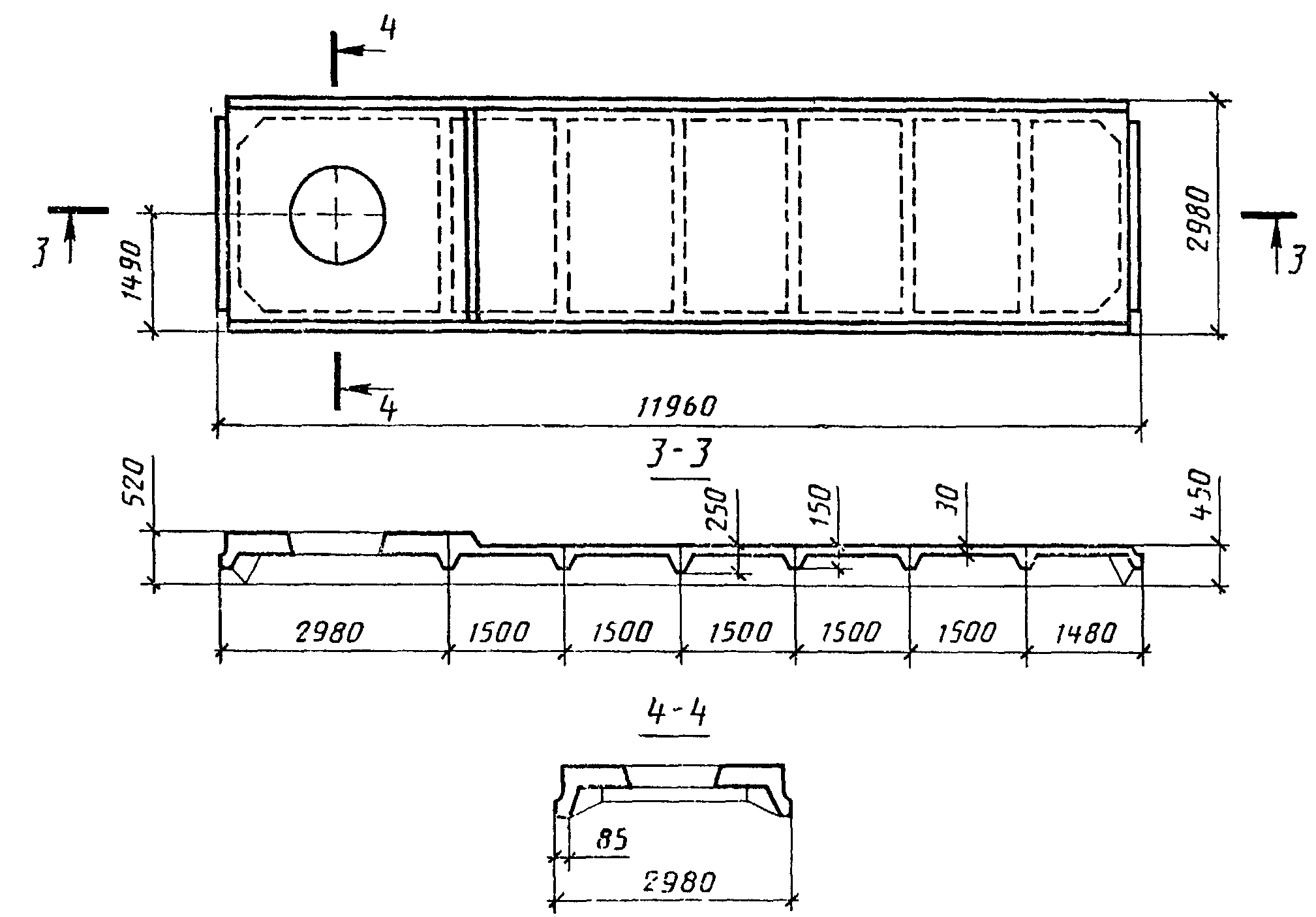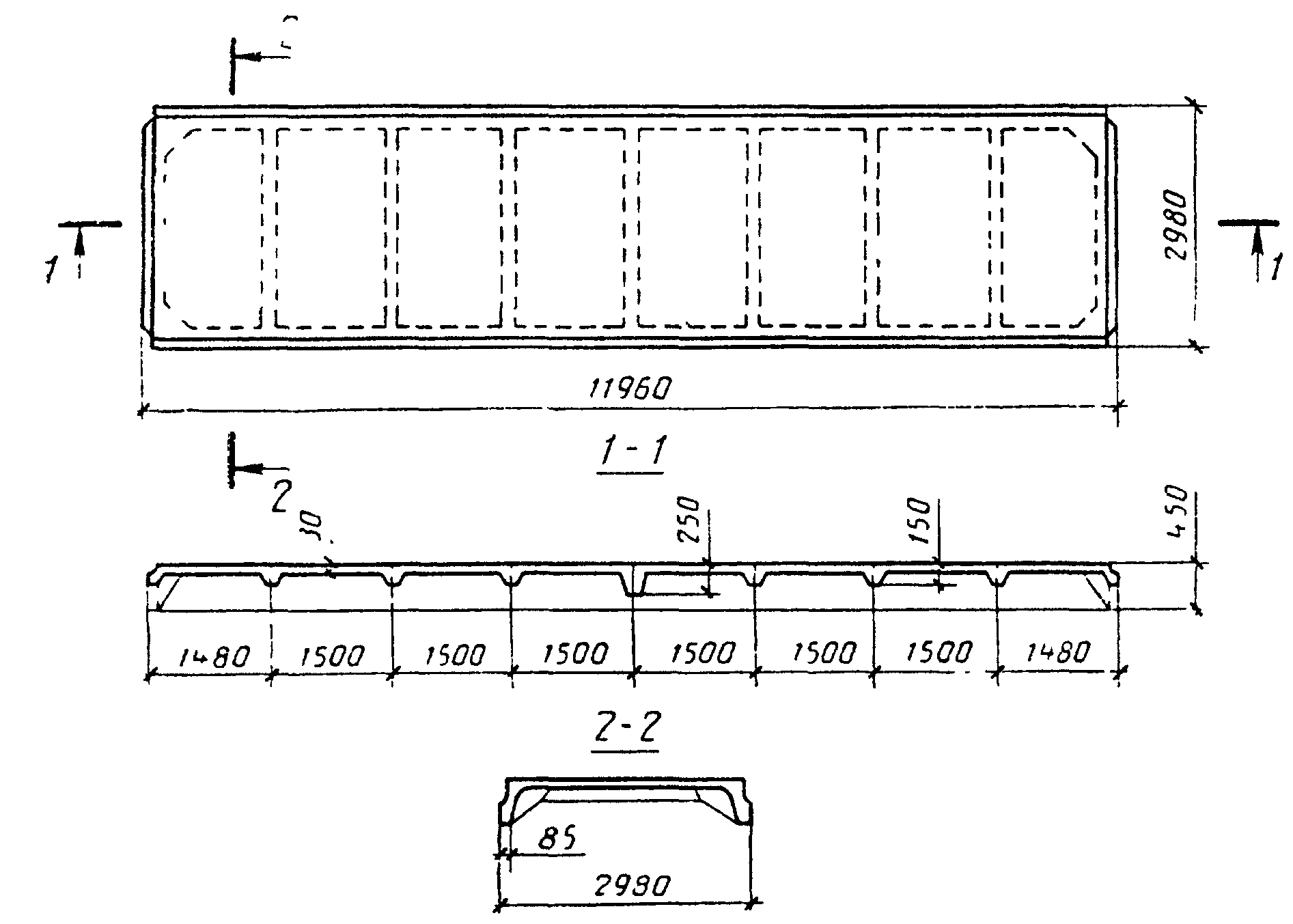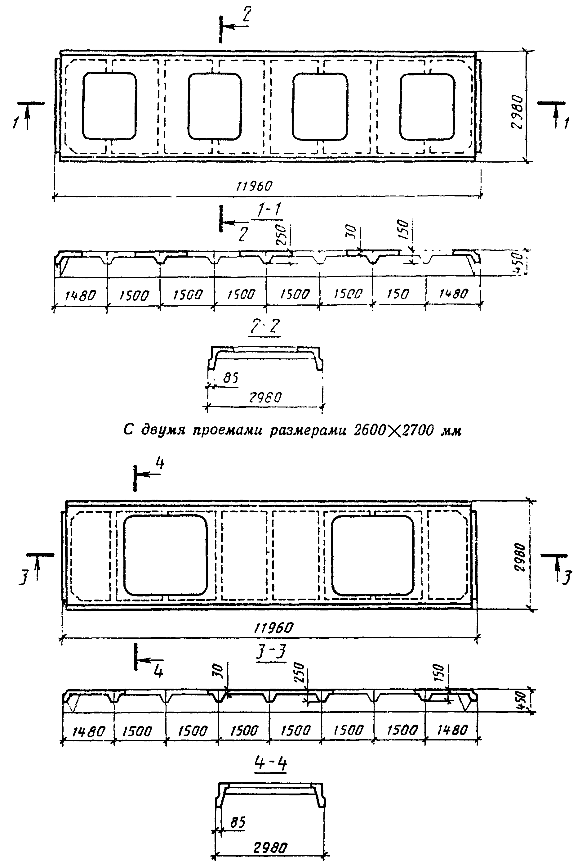 1.2.6. В случаях, предусмотренных проектом здания, плиты могут иметь дополнительные отверстия, вырезы в полках, углубления на наружных гранях продольных ребер для устройства бетонных шпонок между смежными плитами, а также дополнительные закладные изделия.